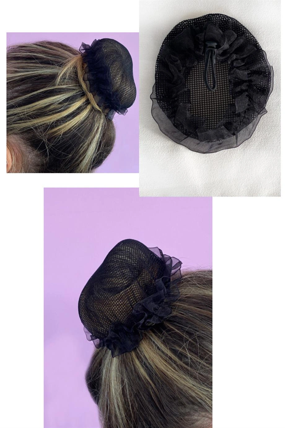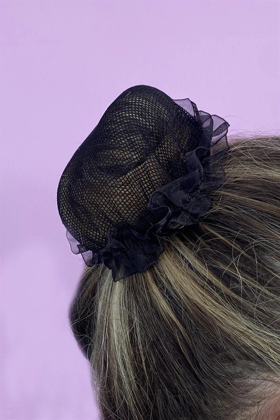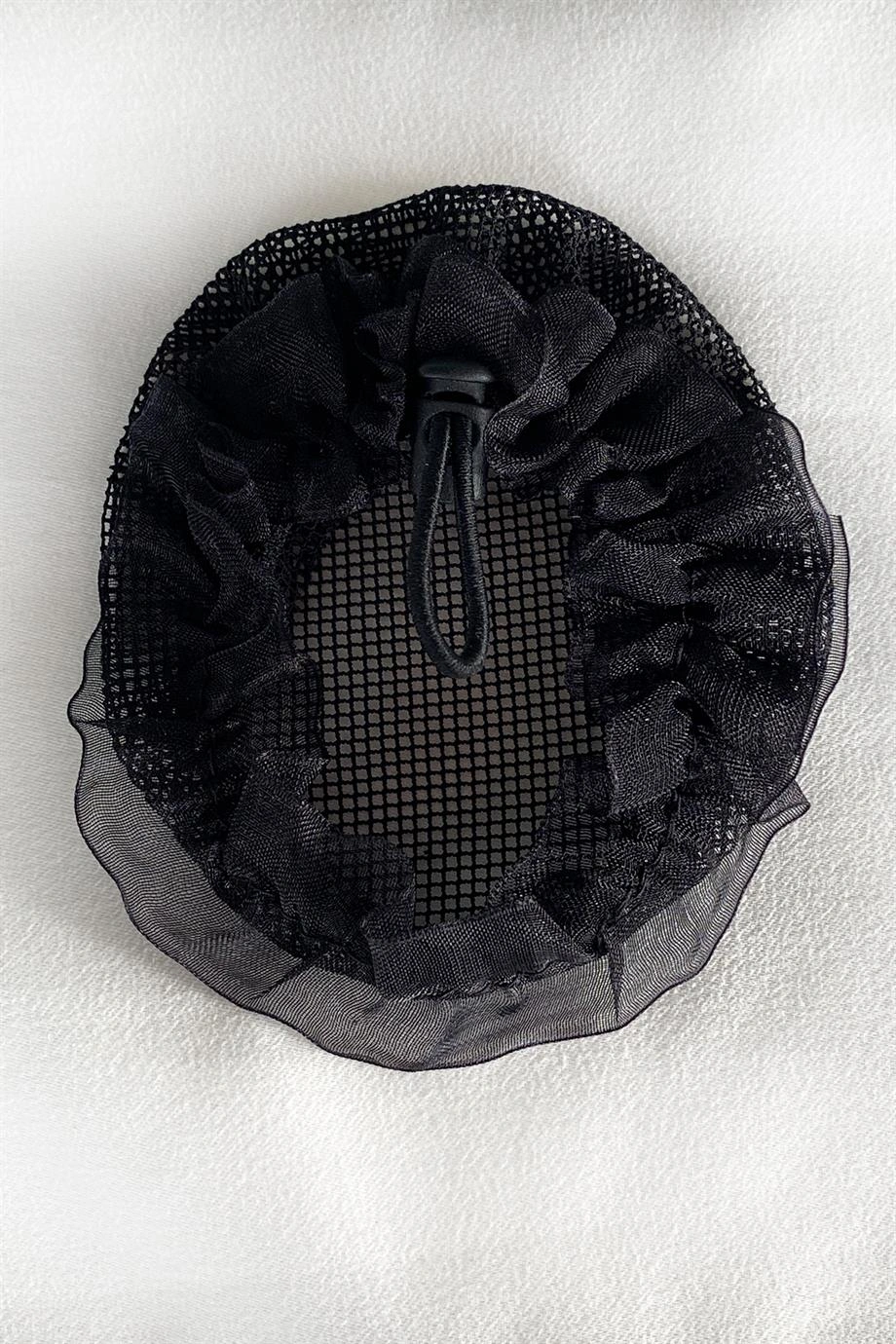 Siyah Renk Küçük File Detaylı Topuz Toka