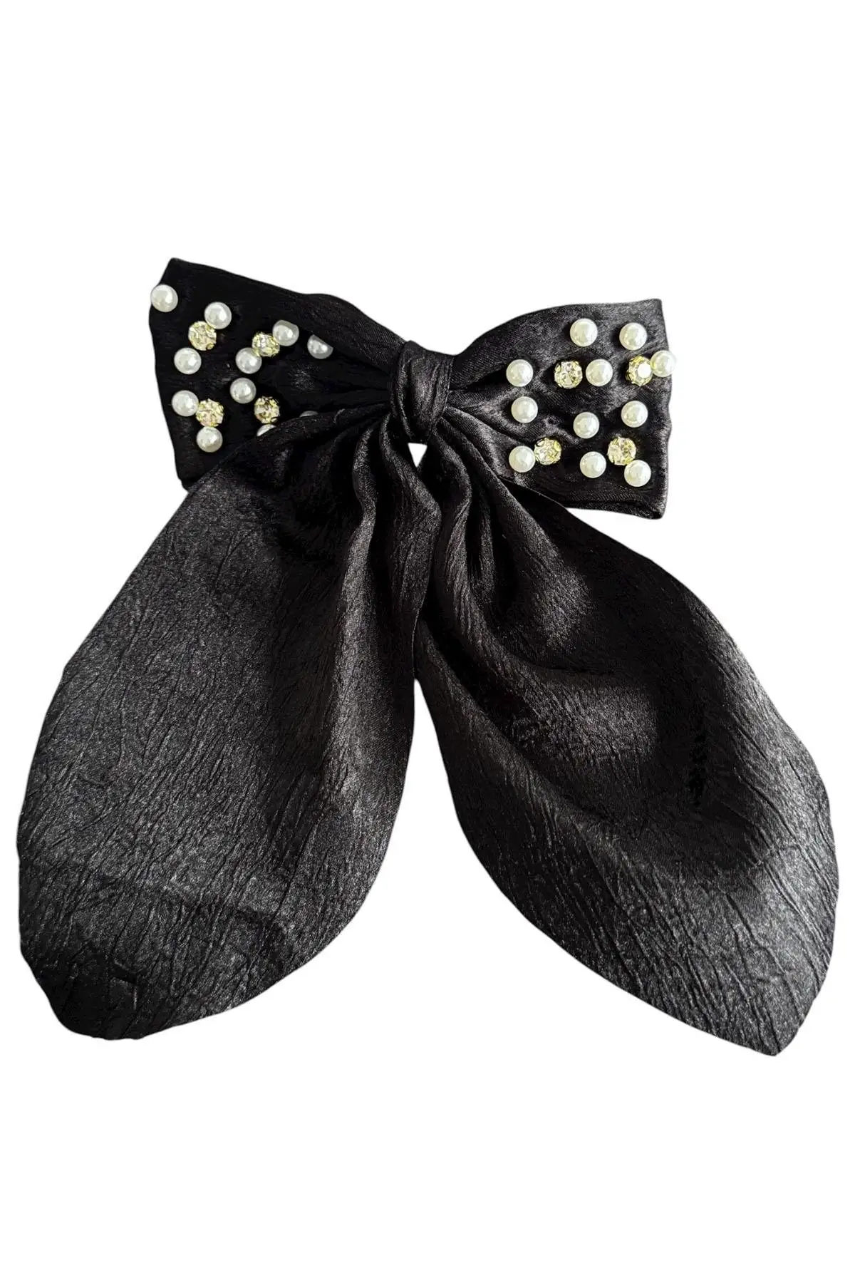 Siyah Renk Kurdele Figürlü İnci Ve Taş Detaylı Otomat Toka