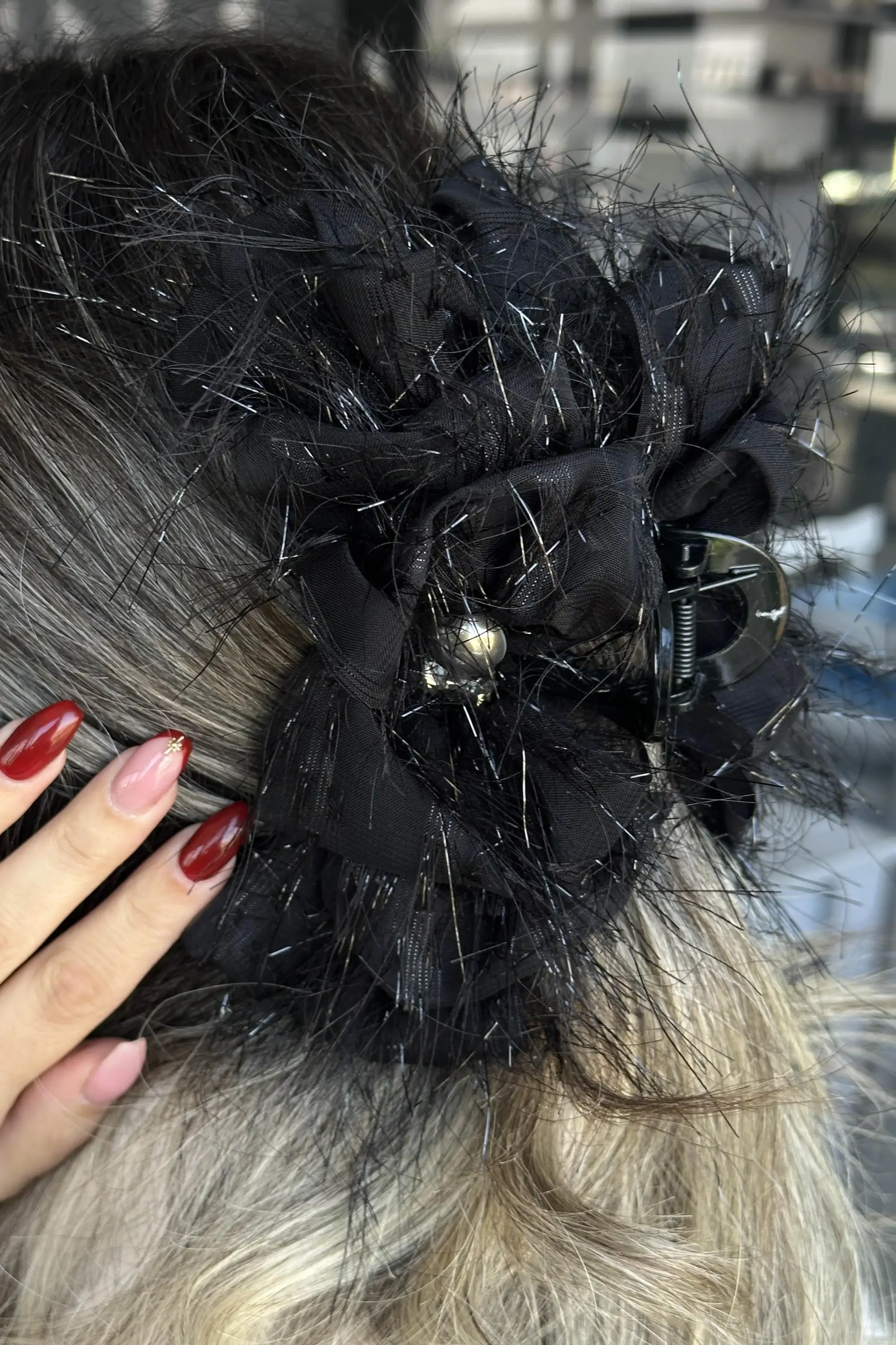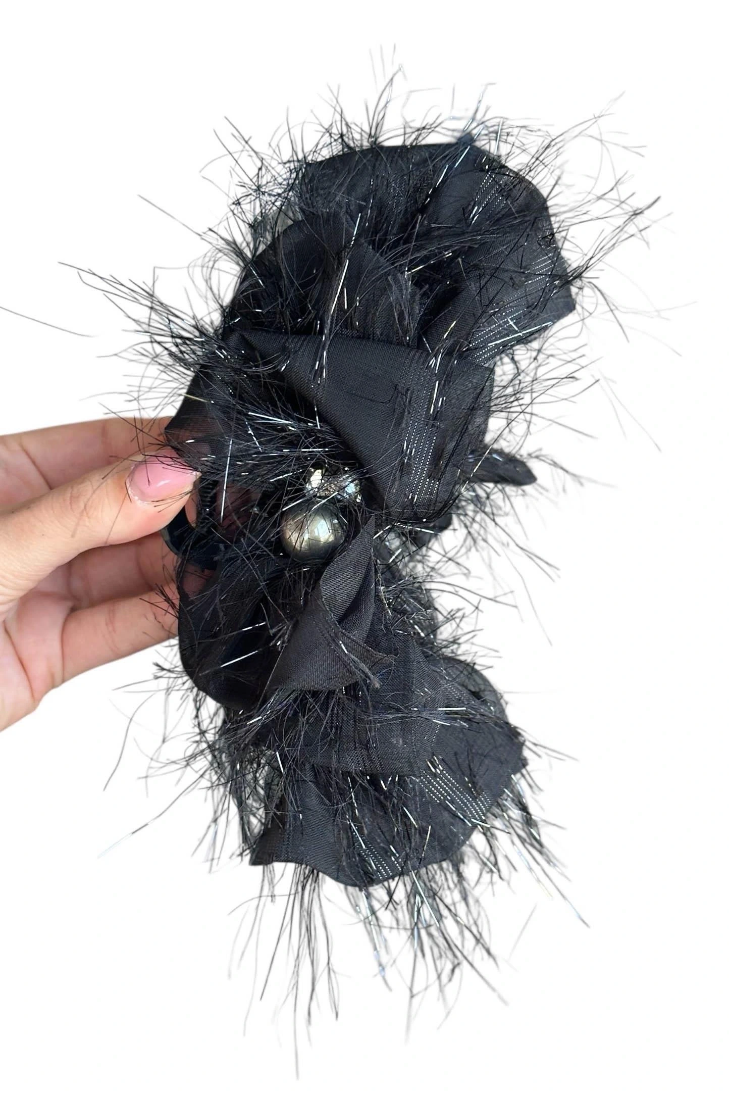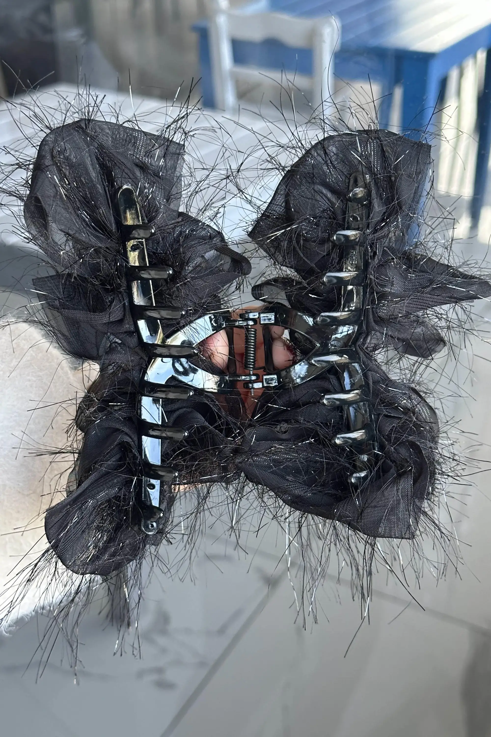 Siyah Renk Kurdele Figürlü Taş Detaylı Mandal Toka