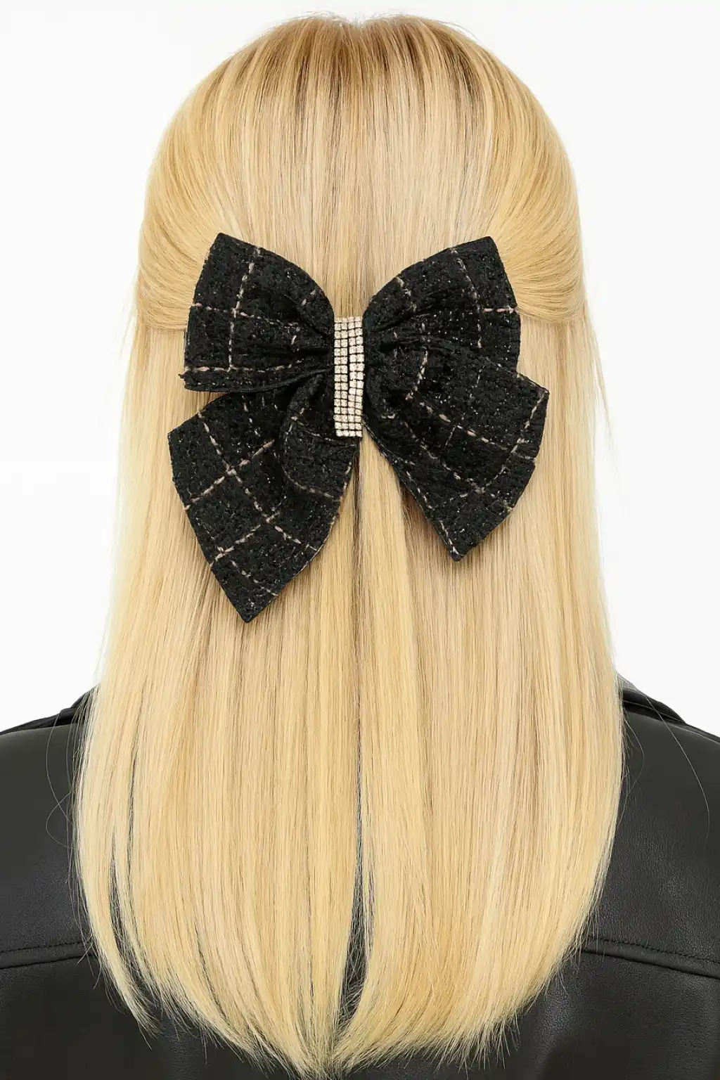Siyah Renk Kurdele Figürlü Taş Detaylı Otomat Toka
