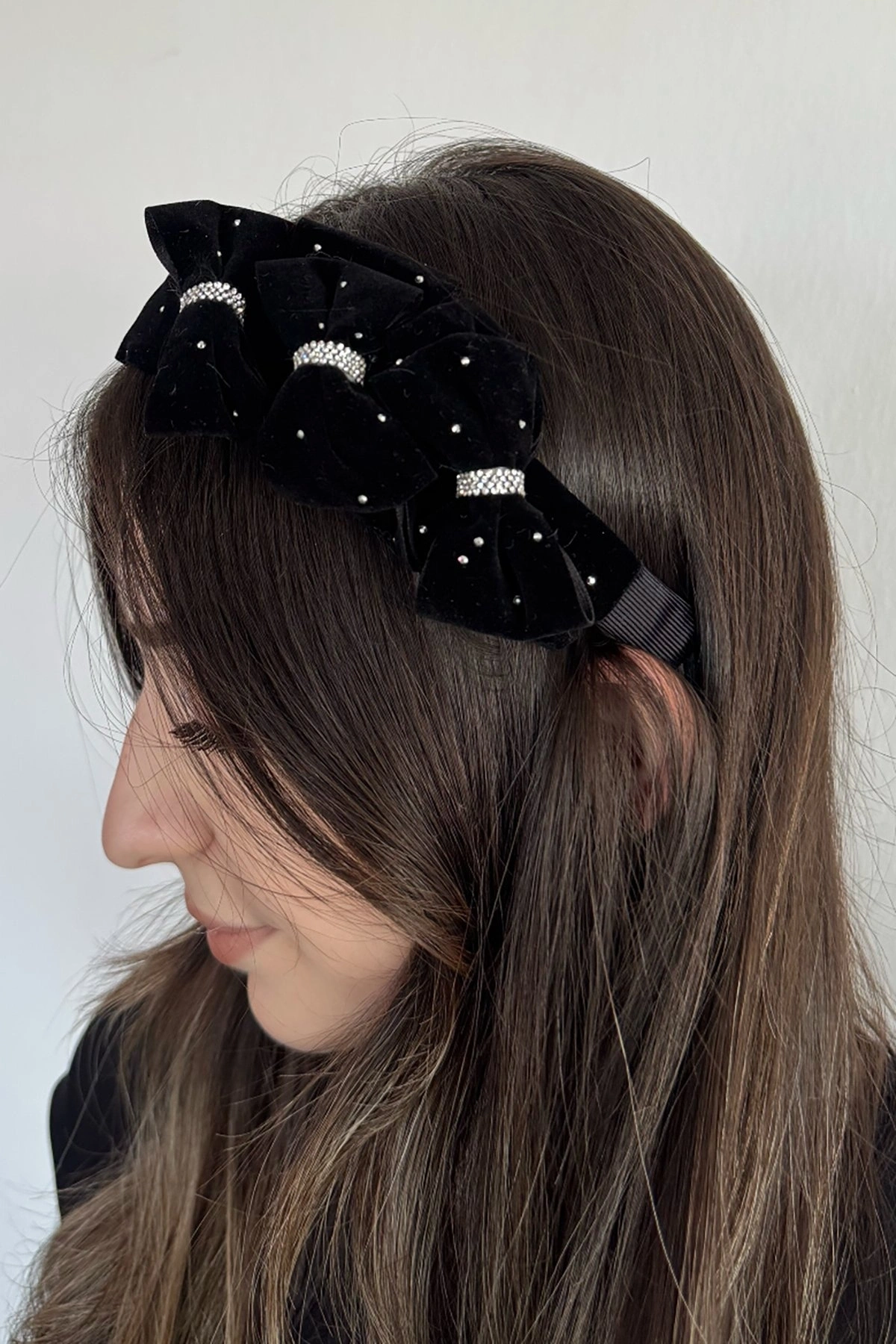 Siyah Renk Kurdele Figürlü Taş Detaylı Taç