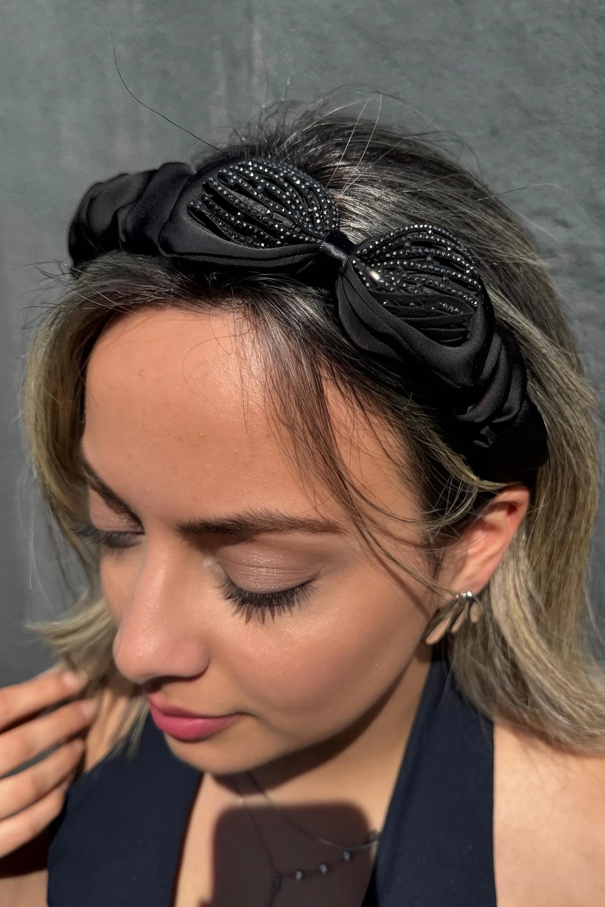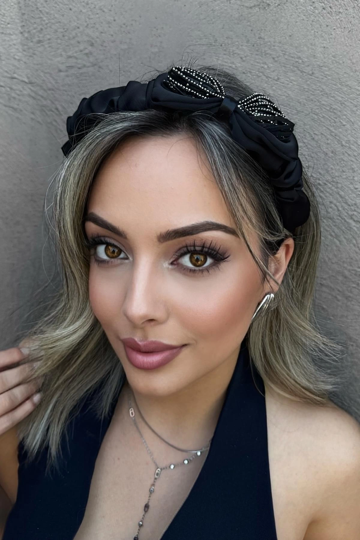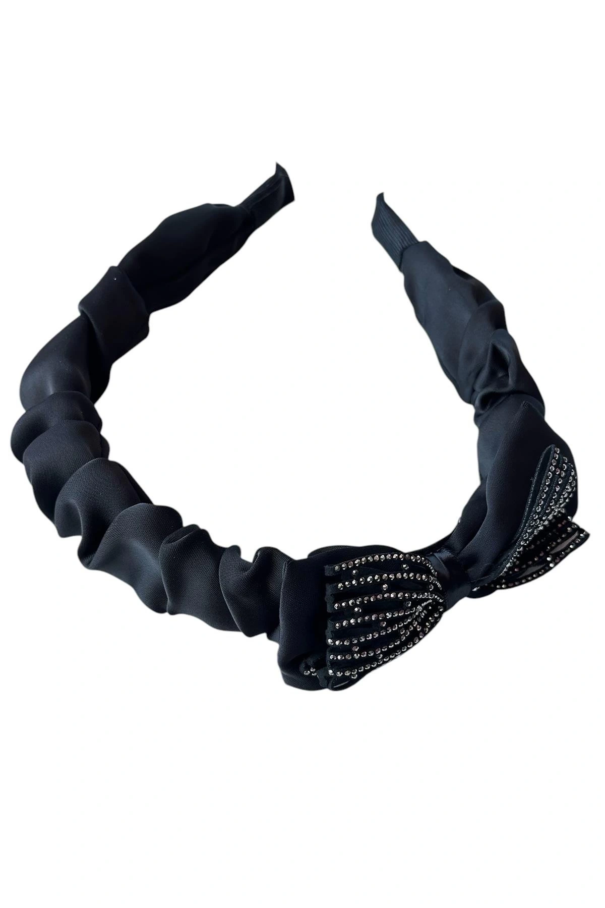 Siyah Renk Kurdele Figürlü Taş Detaylı Taç