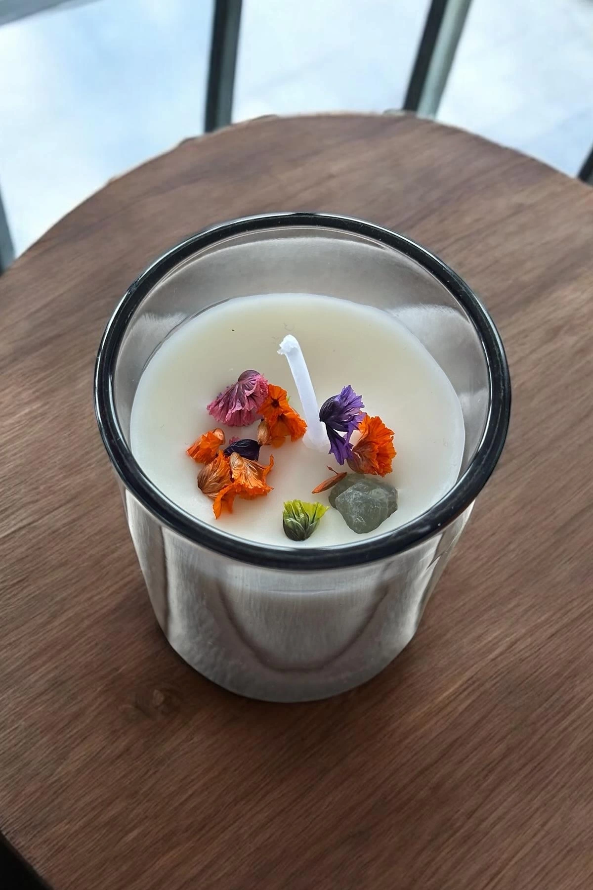 Siyah Renk Kuru Çiçek Detaylı Mum