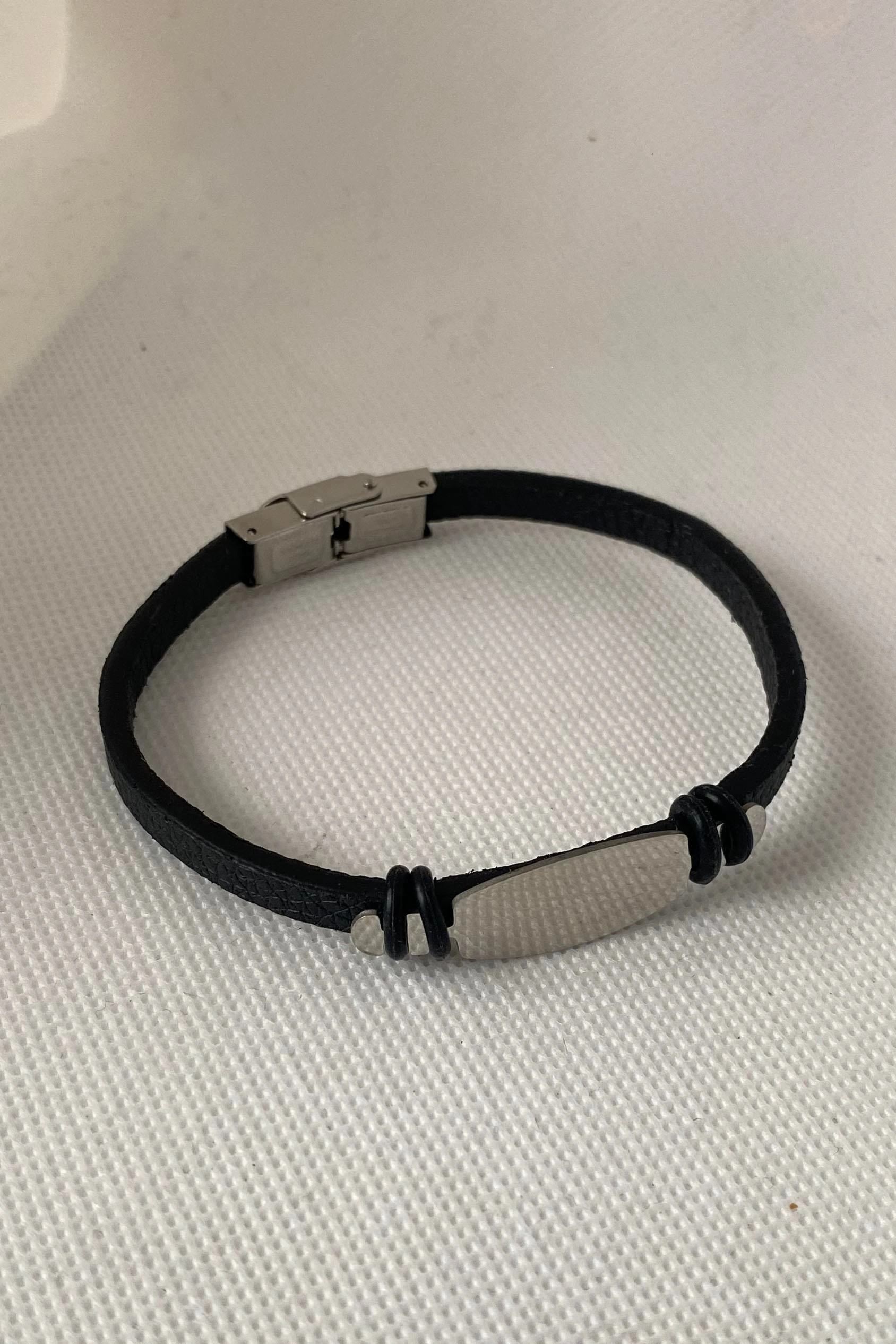 Siyah Renk Metal Detaylı Çelik Bileklik