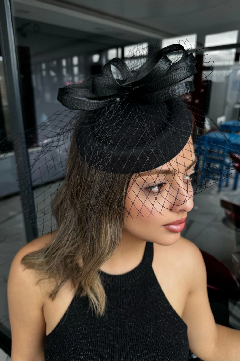 Siyah Renk Nikah Şapkası/Vualet Şapka