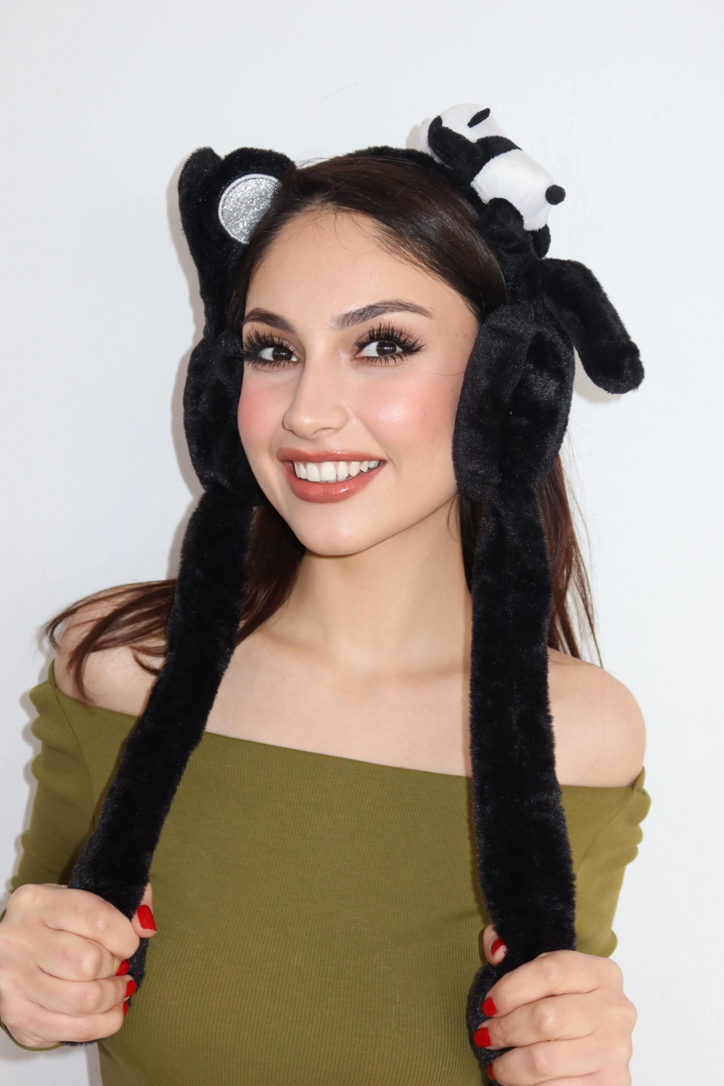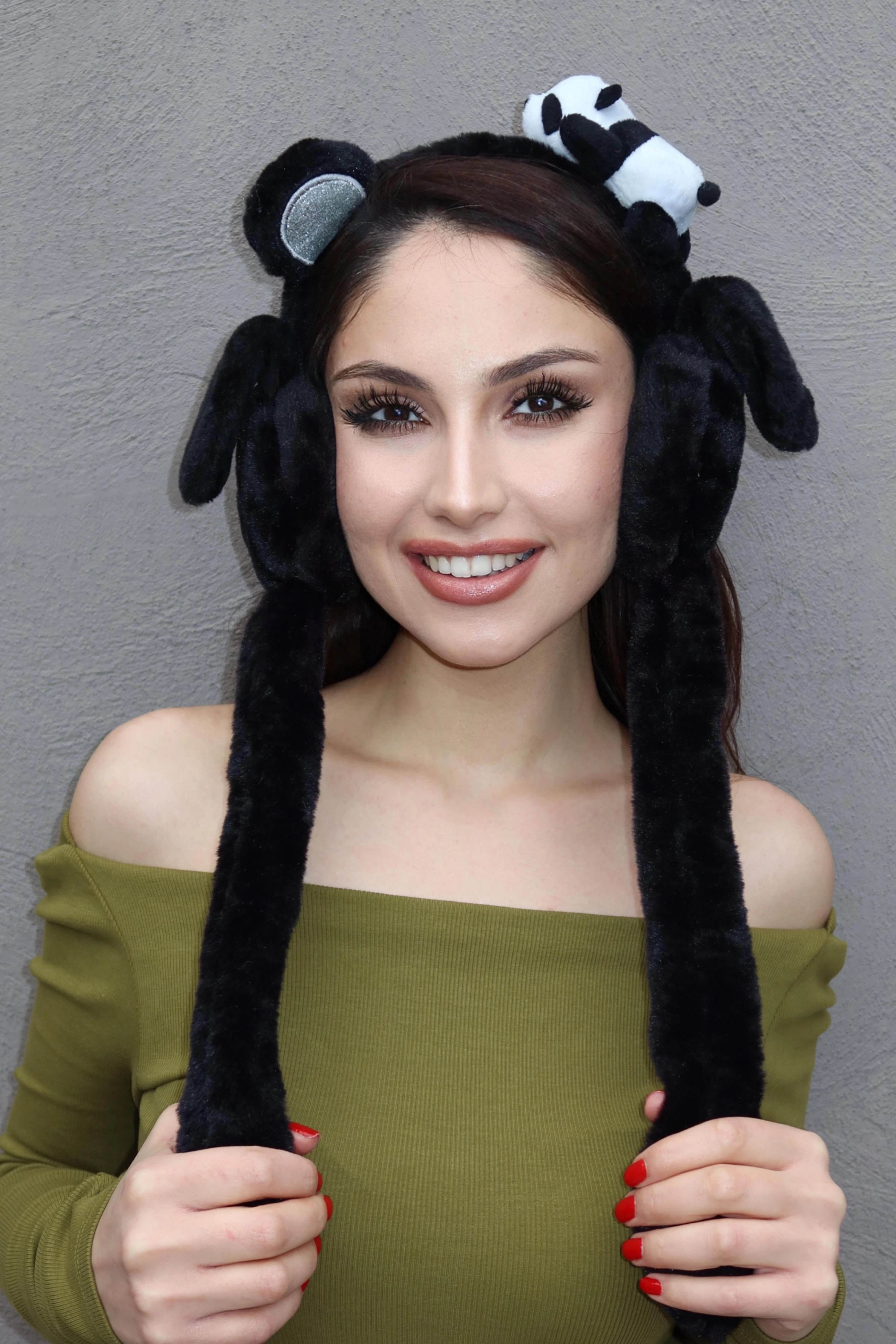 Siyah Renk Panda Figürlü Kulakları Oynayan Peluş Taç