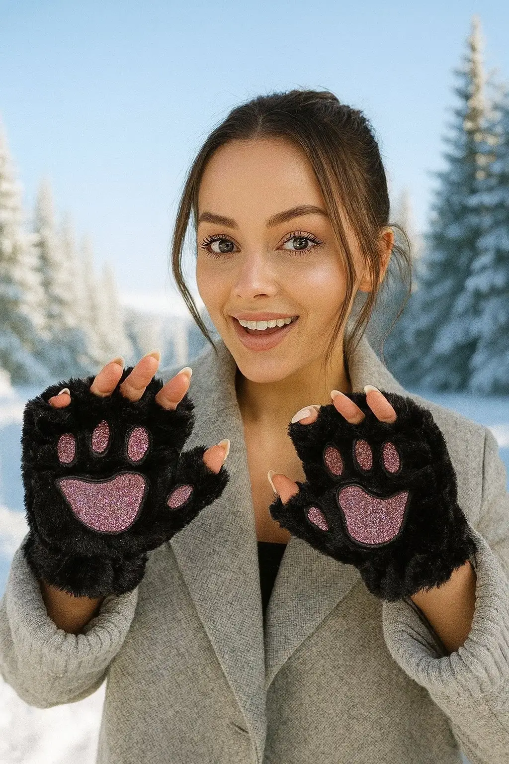 Siyah Renk Pati Figürlü Peluş Eldiven