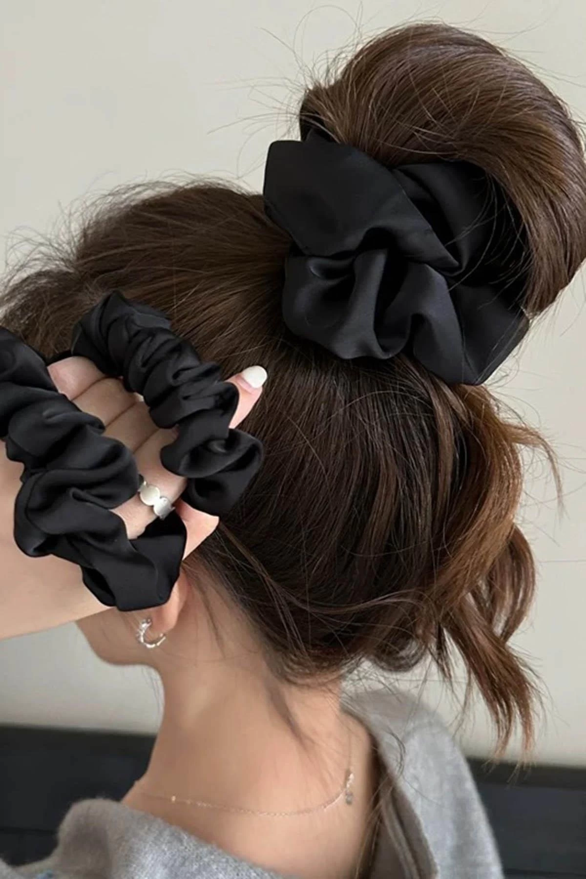 Siyah Renk Saten Simit Toka