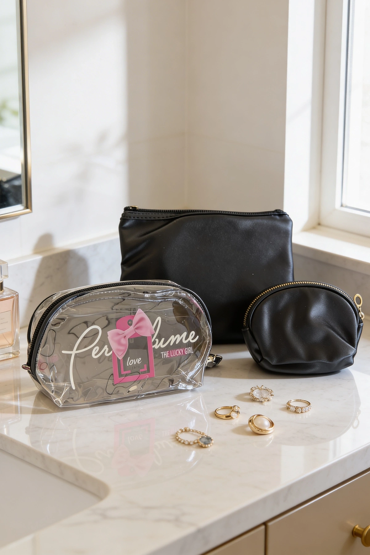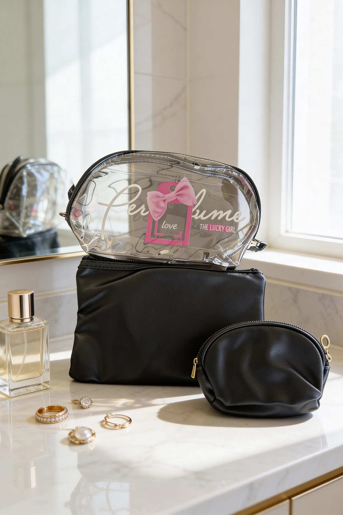 Siyah Renk Şeffaf 3'lü Makyaj Çantası