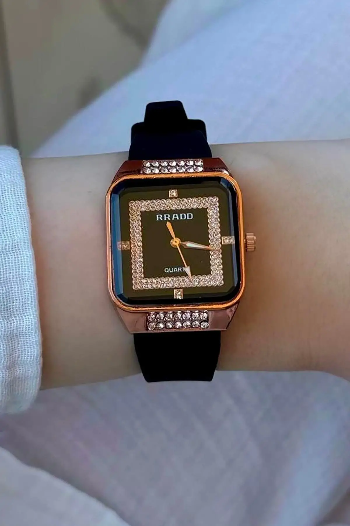 Siyah Renk Silikon Kordonlu Kadın Saat