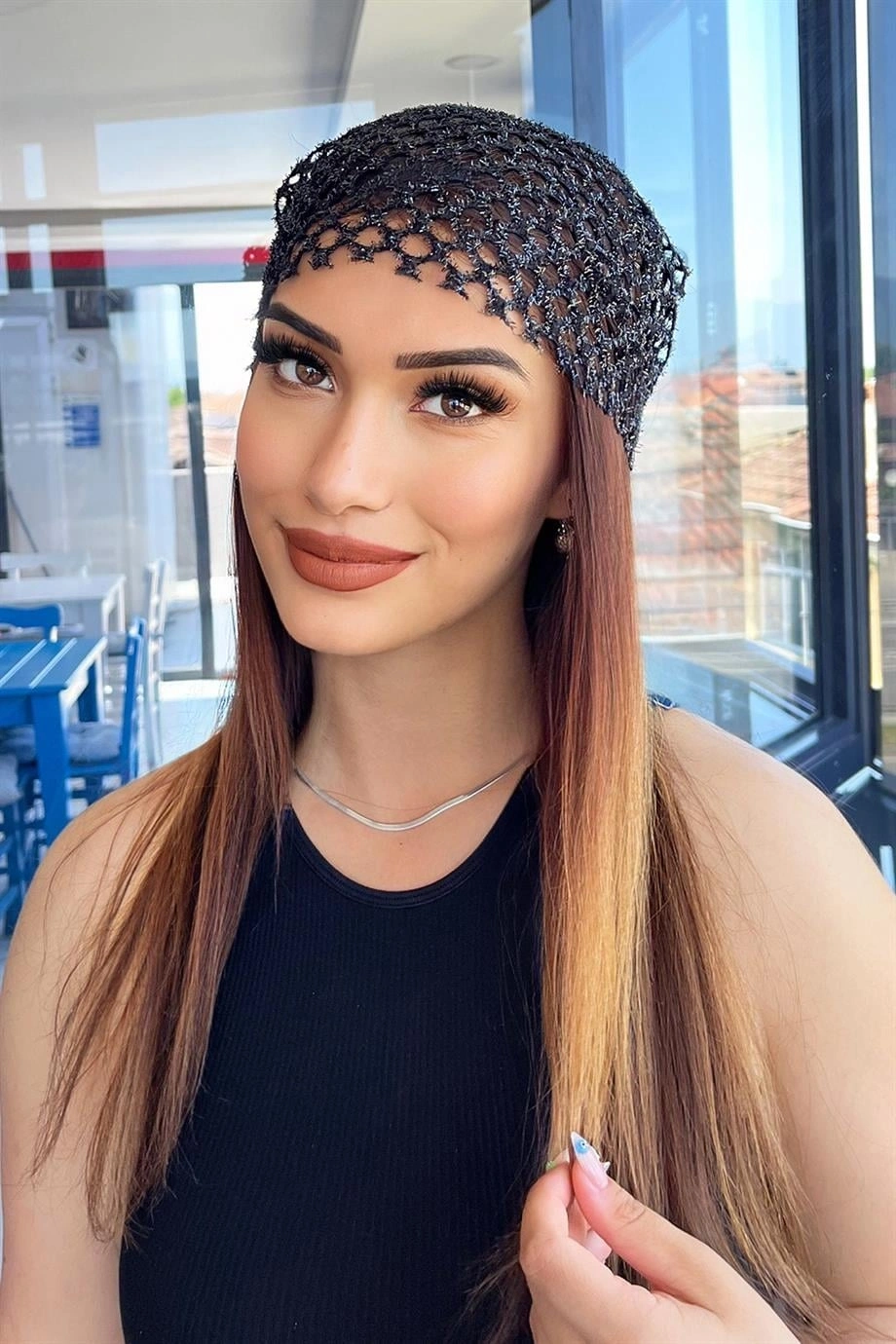 Siyah Renk Simli Fular