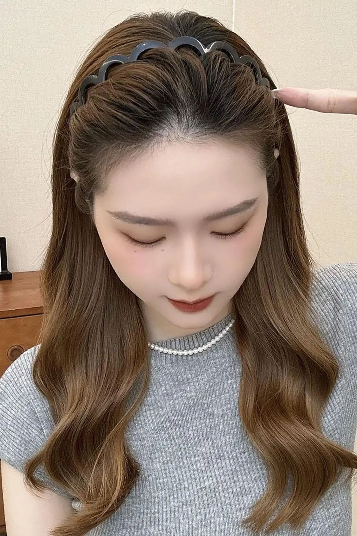 Gri Renk Taş Detaylı Örgülü Taç