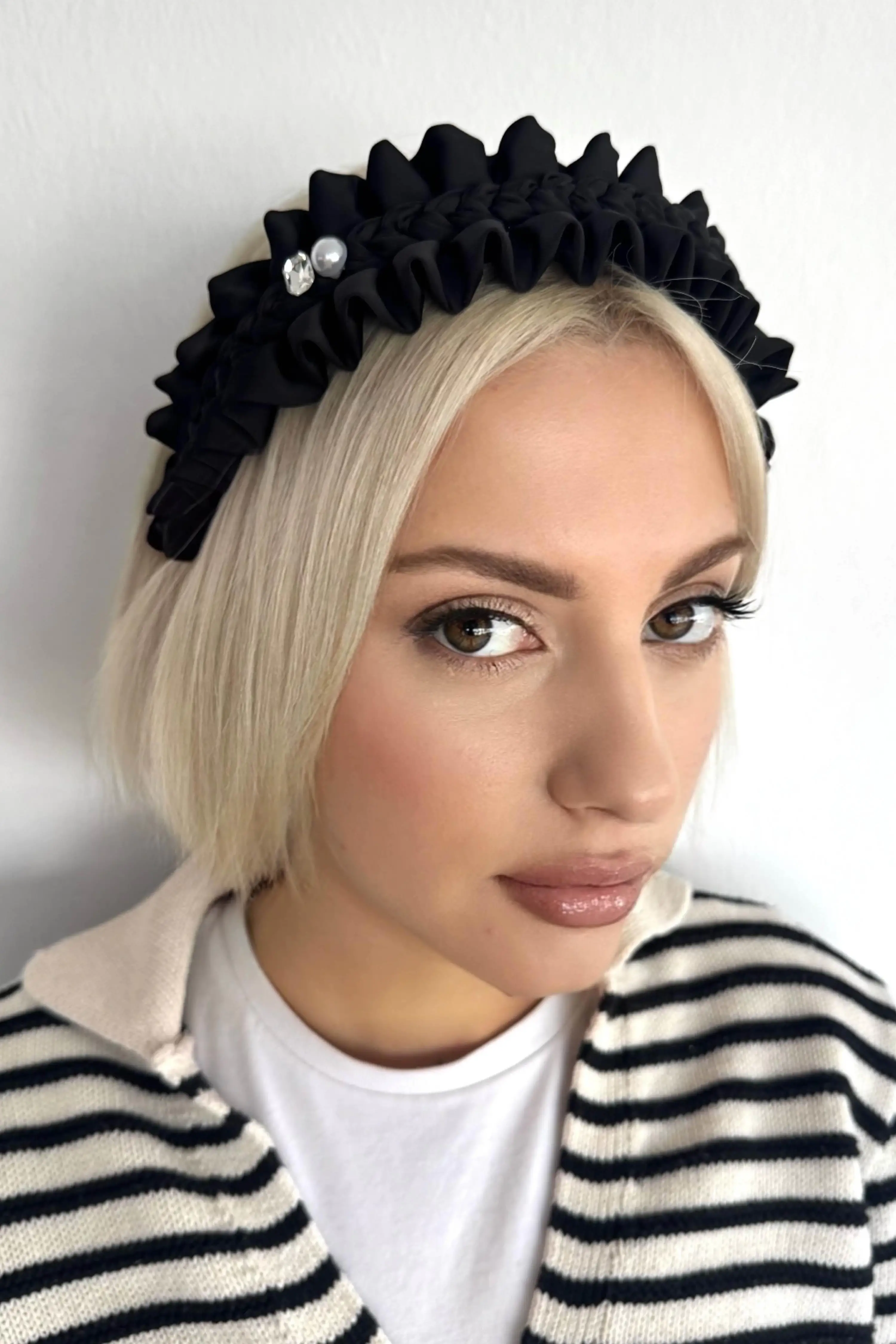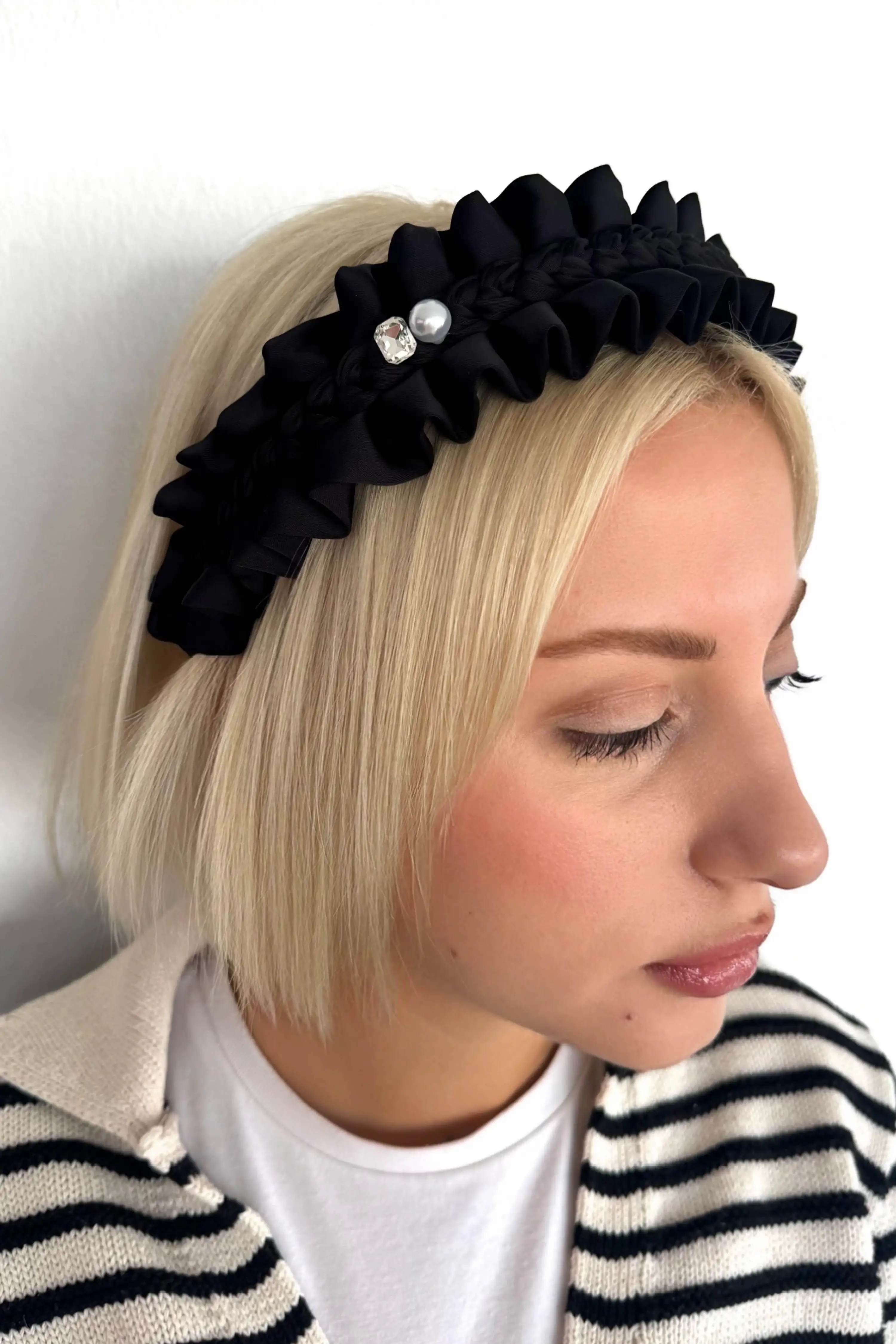 Siyah Renk Taş Detaylı Büzgülü Taç