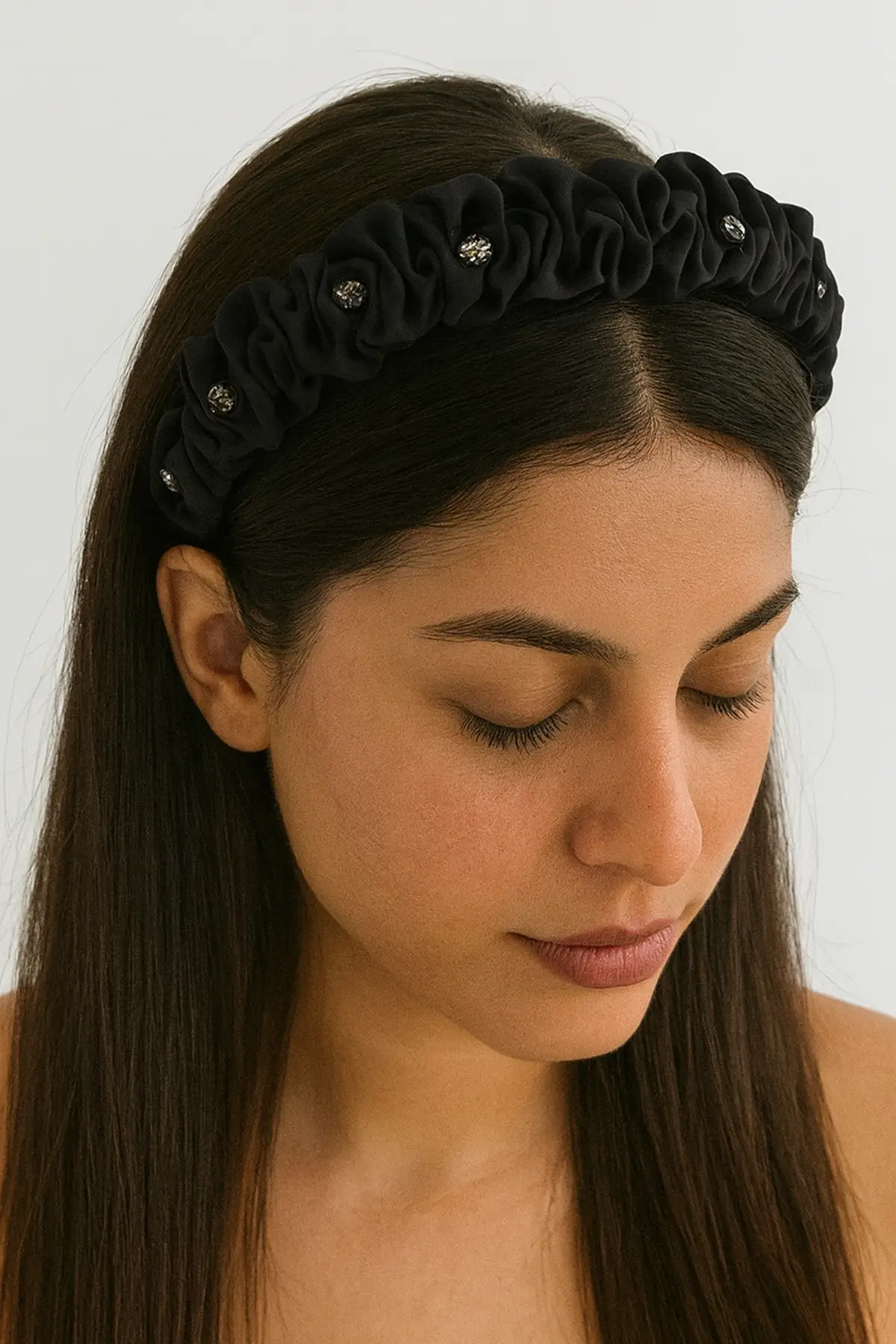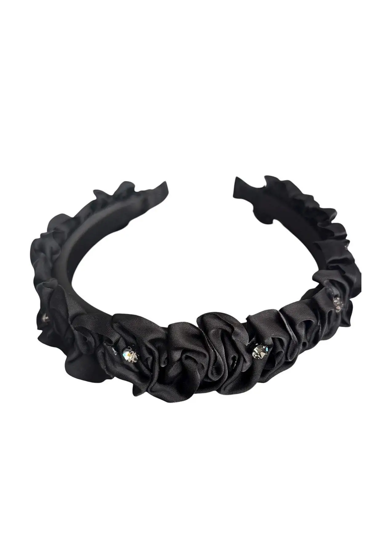 Siyah Renk Kurdele Figürlü Taş Detaylı Taç