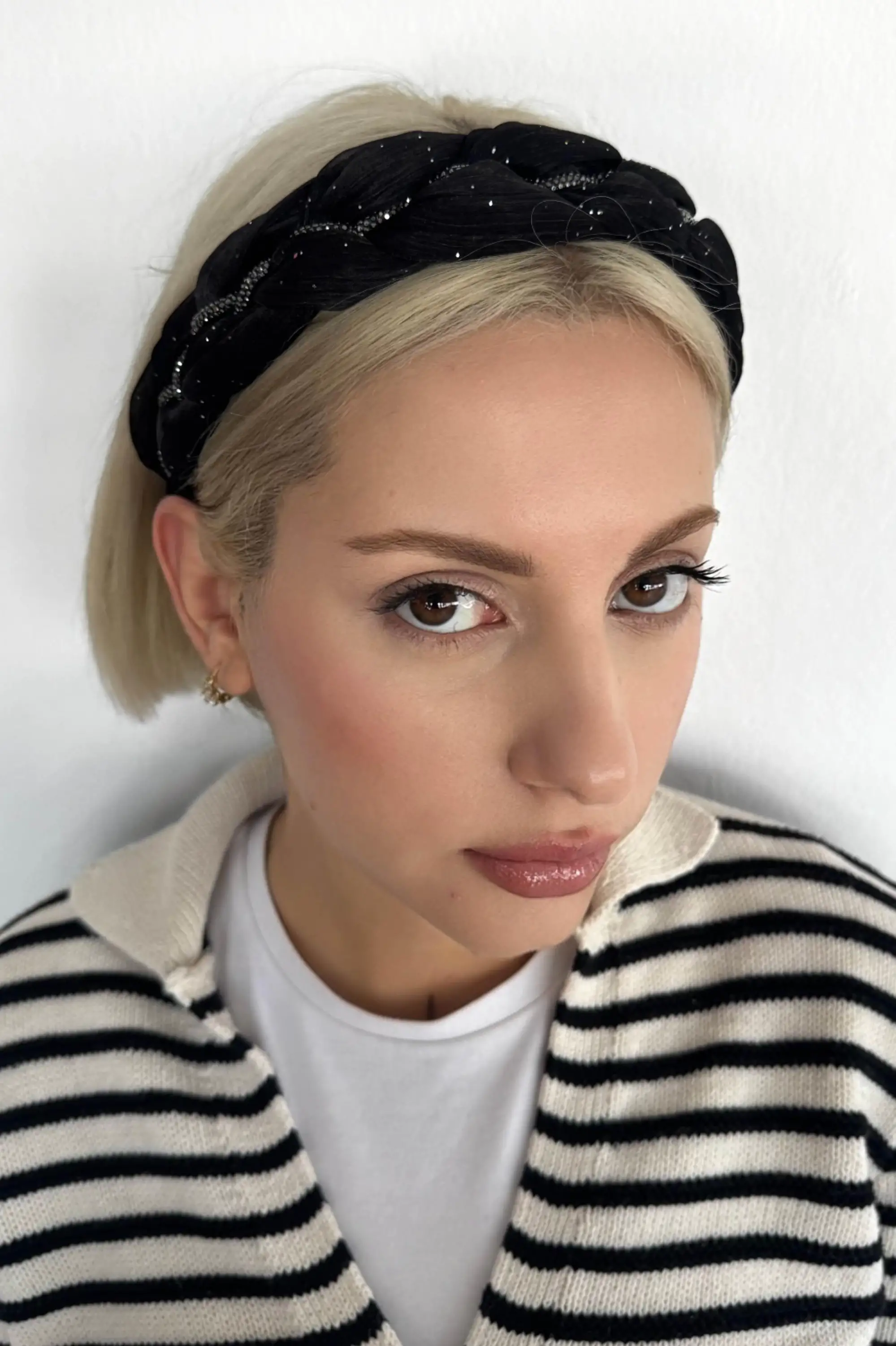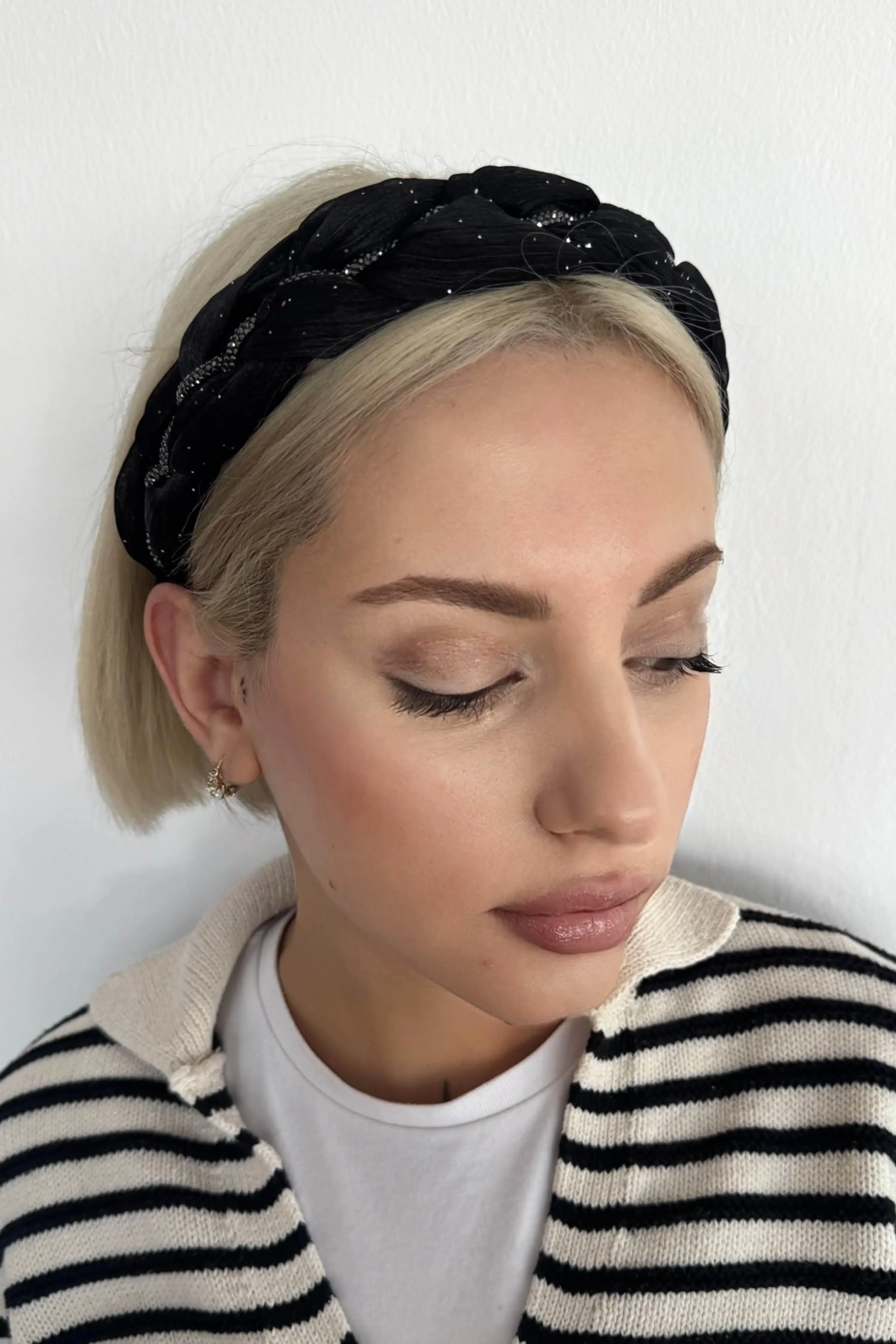 Siyah Renk Taş Detaylı Büzgülü Taç