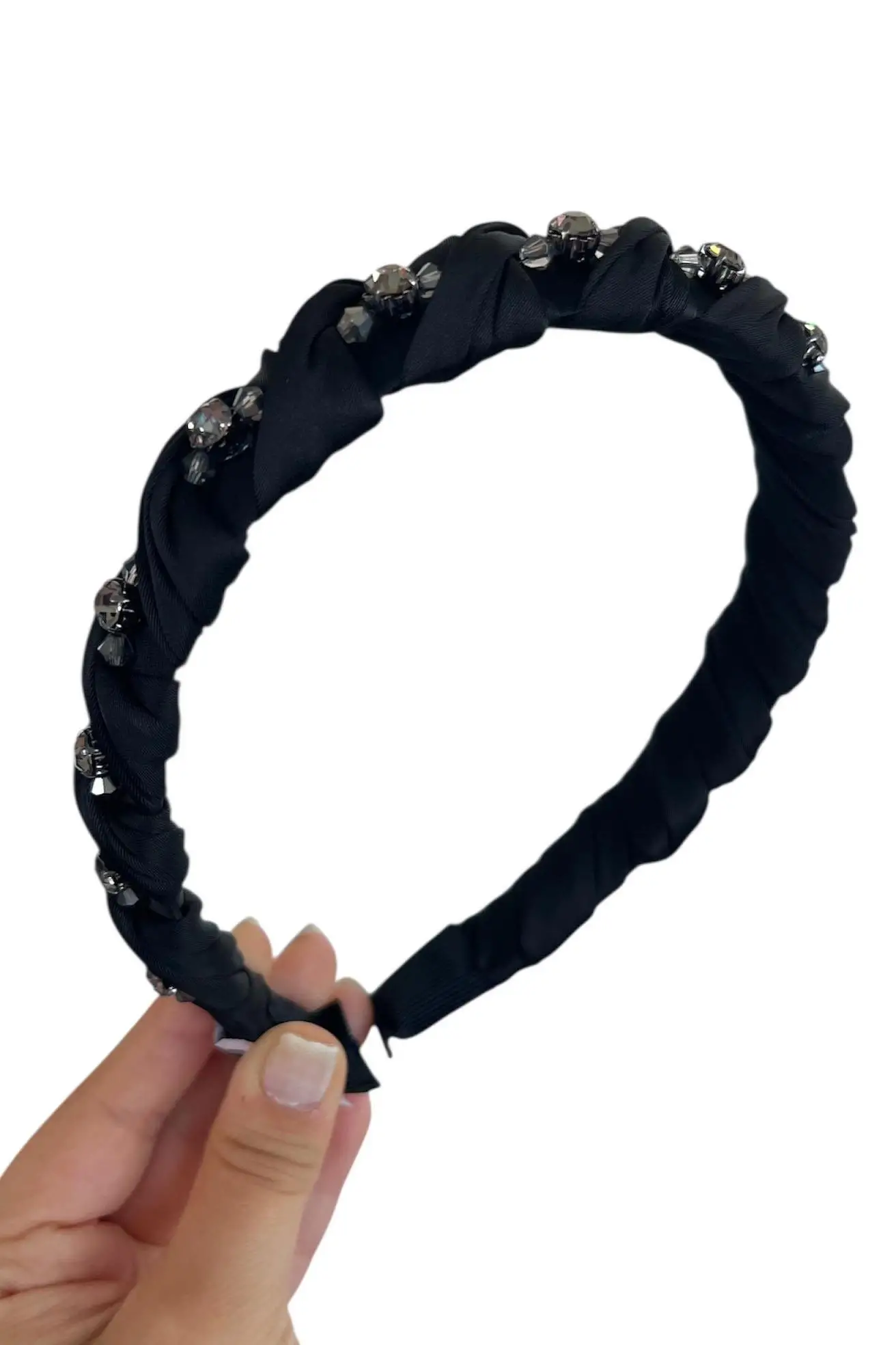 Siyah Renk Taş Detaylı Büzgülü Taç