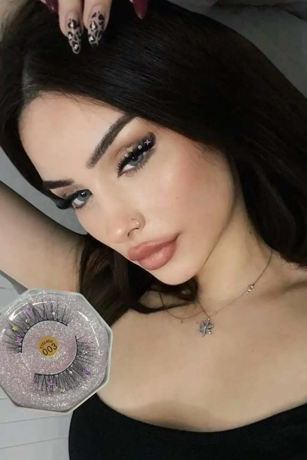 Renkli Taş Detaylı 5D Volüm İpek Takma Kirpik