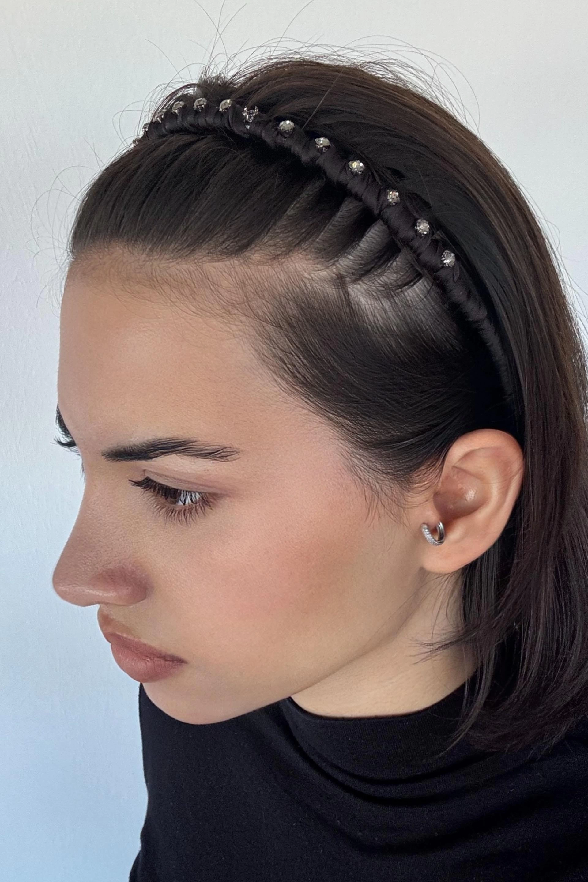 Siyah Renk Taş Detaylı Taraklı Taç