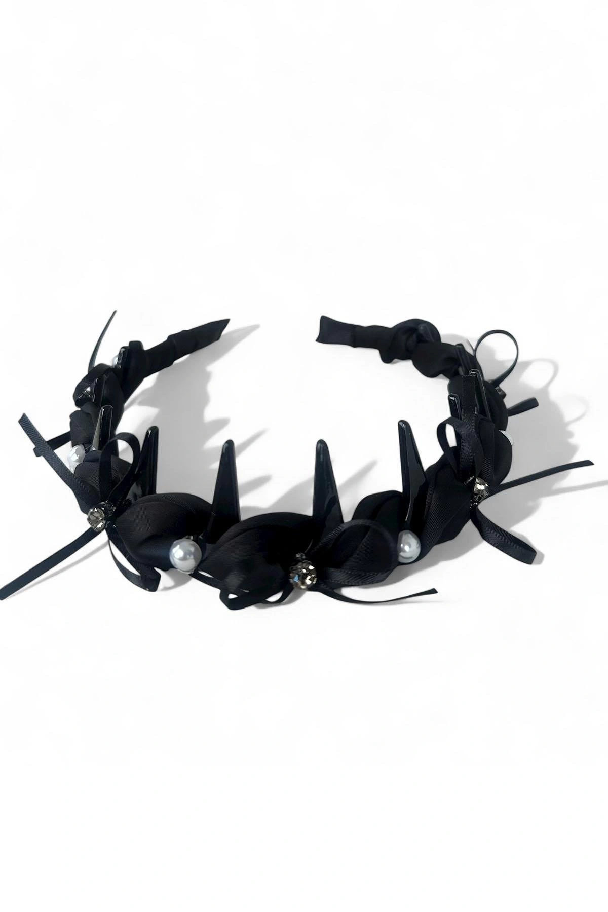 Siyah Renk Taş Ve İnci Detaylı Taraklı Taç