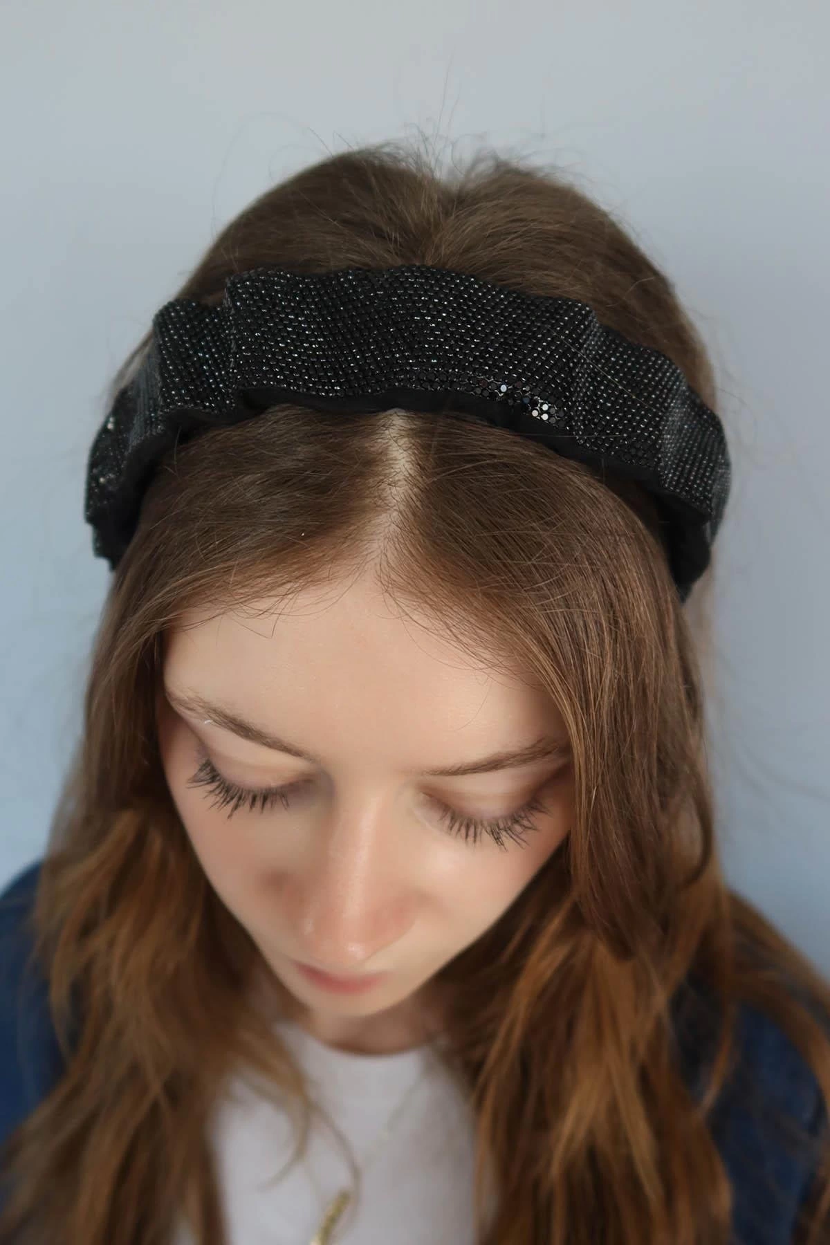 Siyah Renk Taşlı Büzgü Detaylı Taç