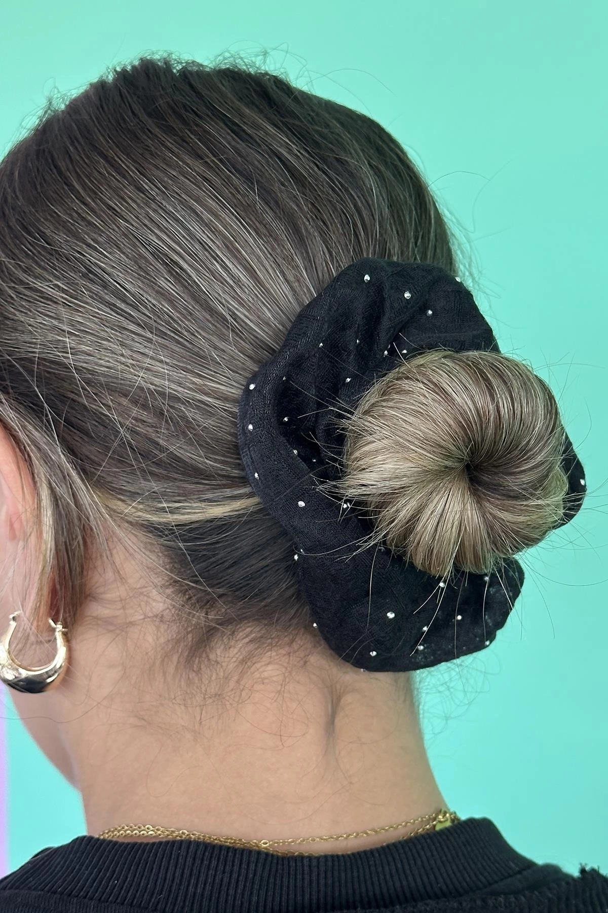 Siyah Renk Taşlı Simit Toka