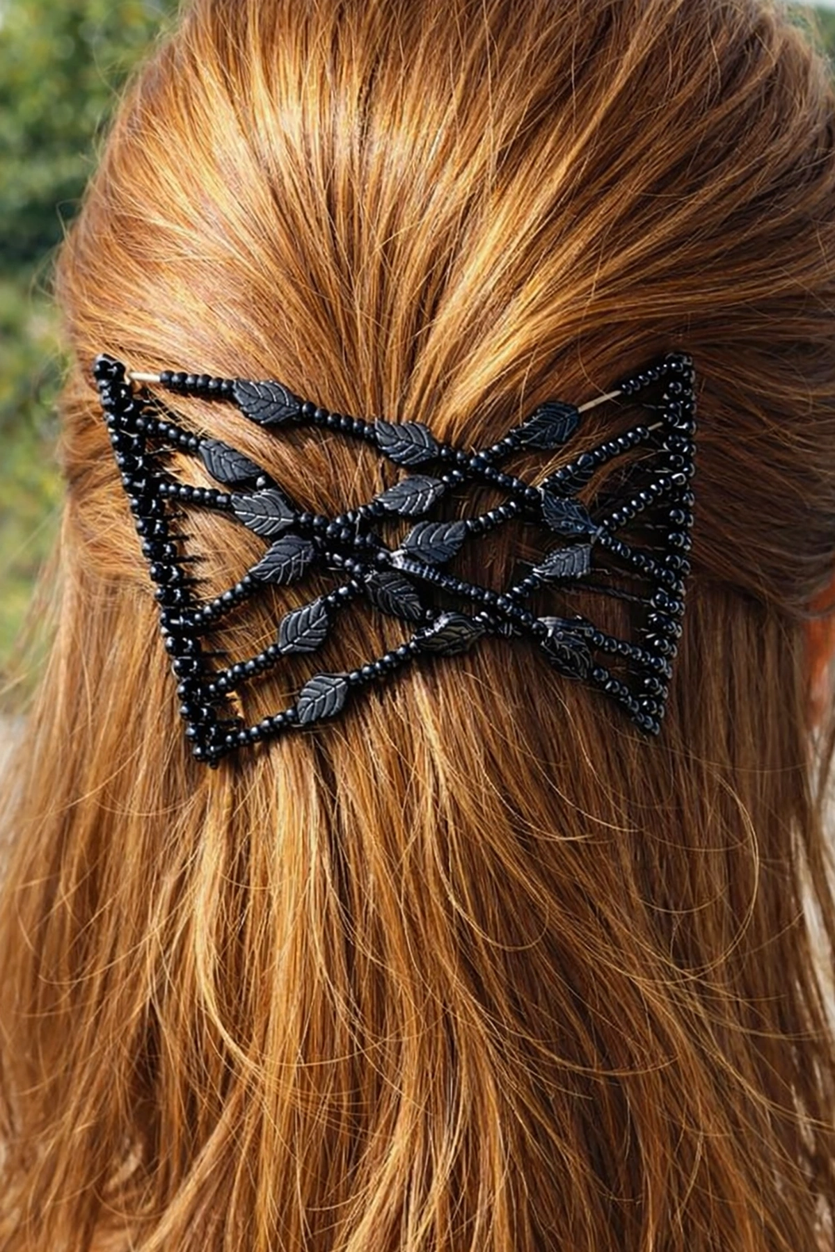 Siyah Renk Yaprak Figürlü Tel Tarak Toka