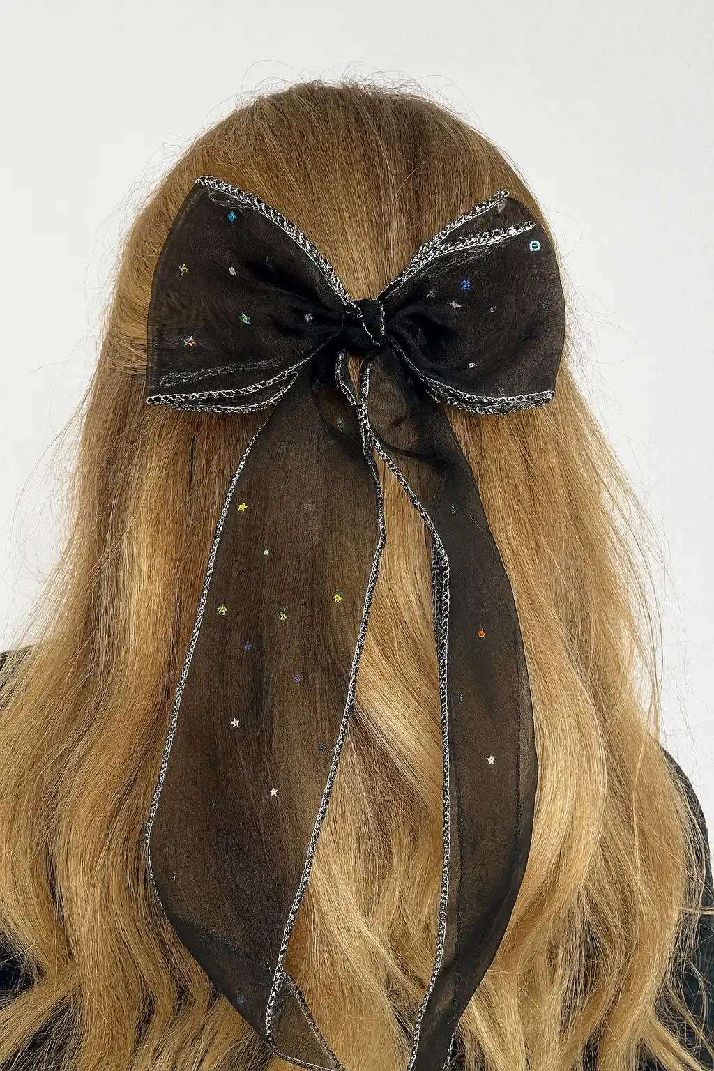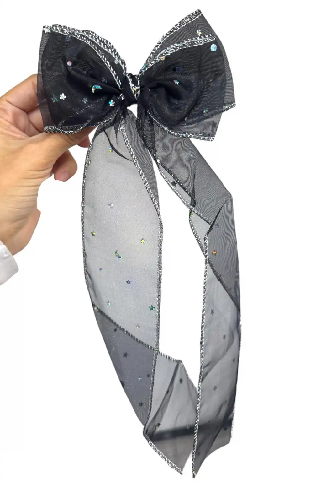 Siyah Renk Yıldız Detaylı Kurdele Otomat Toka