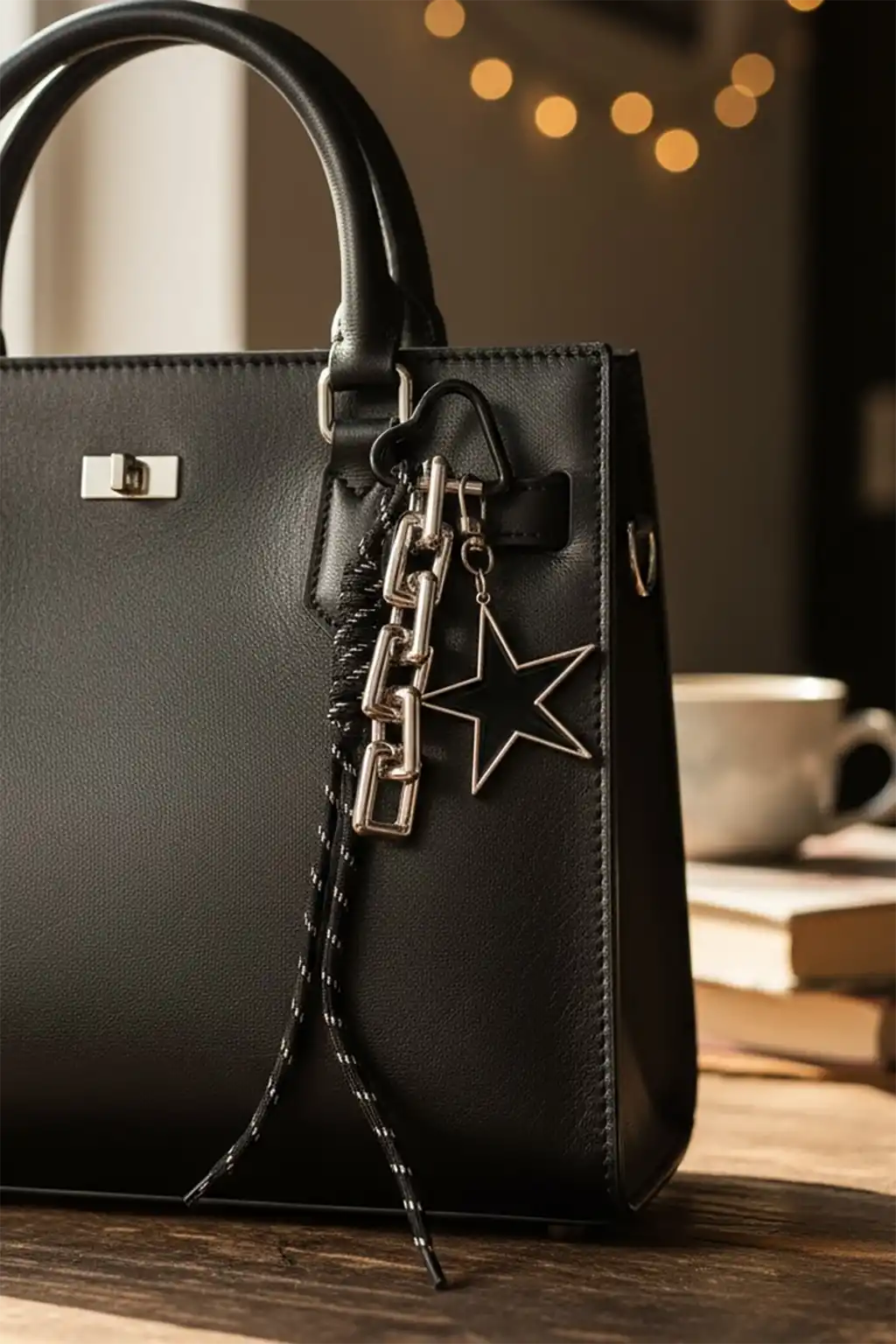 Siyah Renk Yıldız Figürlü Çanta Charm/ Anahtarlık