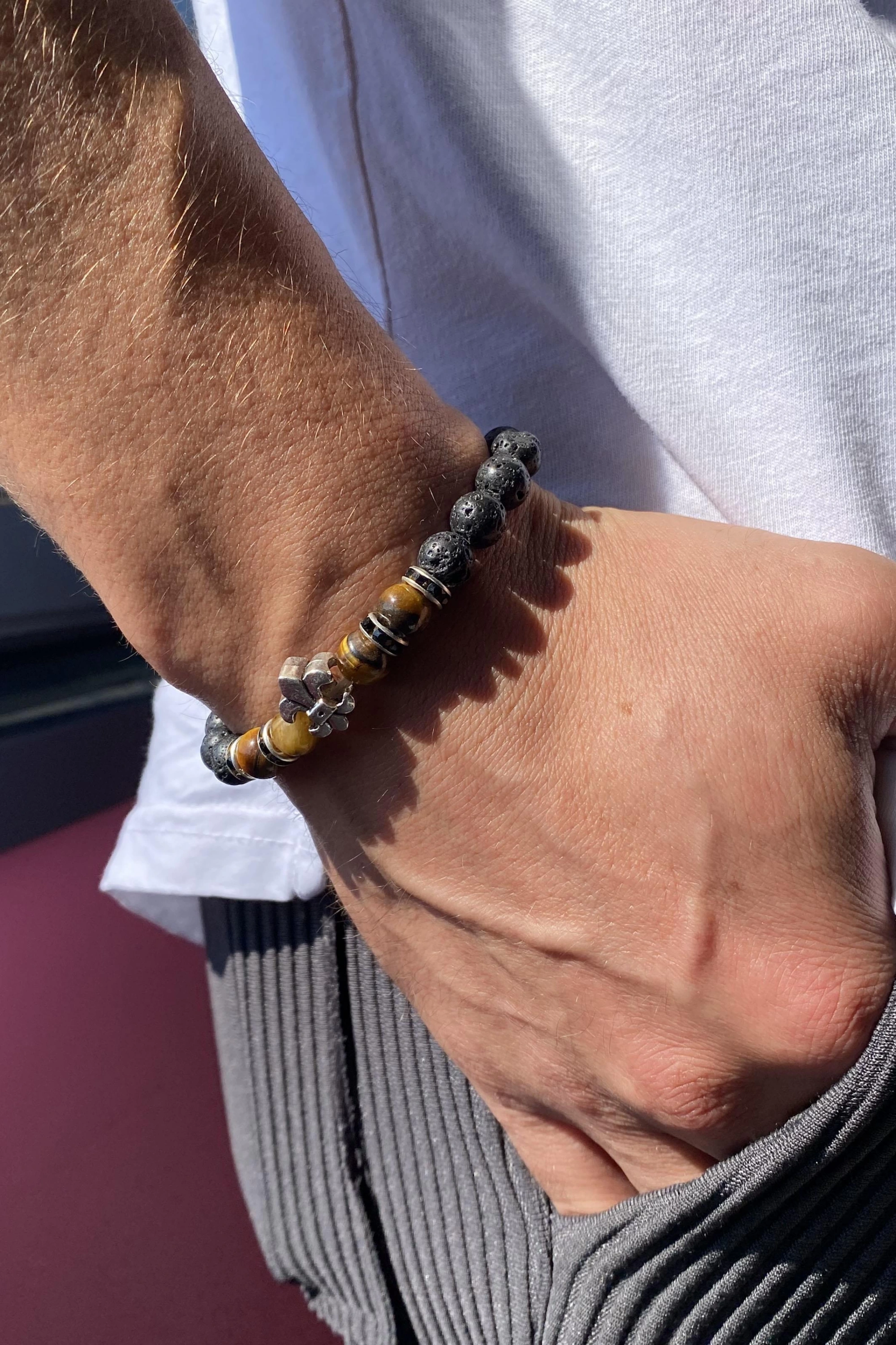 Siyah Renk Zambak Çiçeği Figürlü Erkek Bileklik