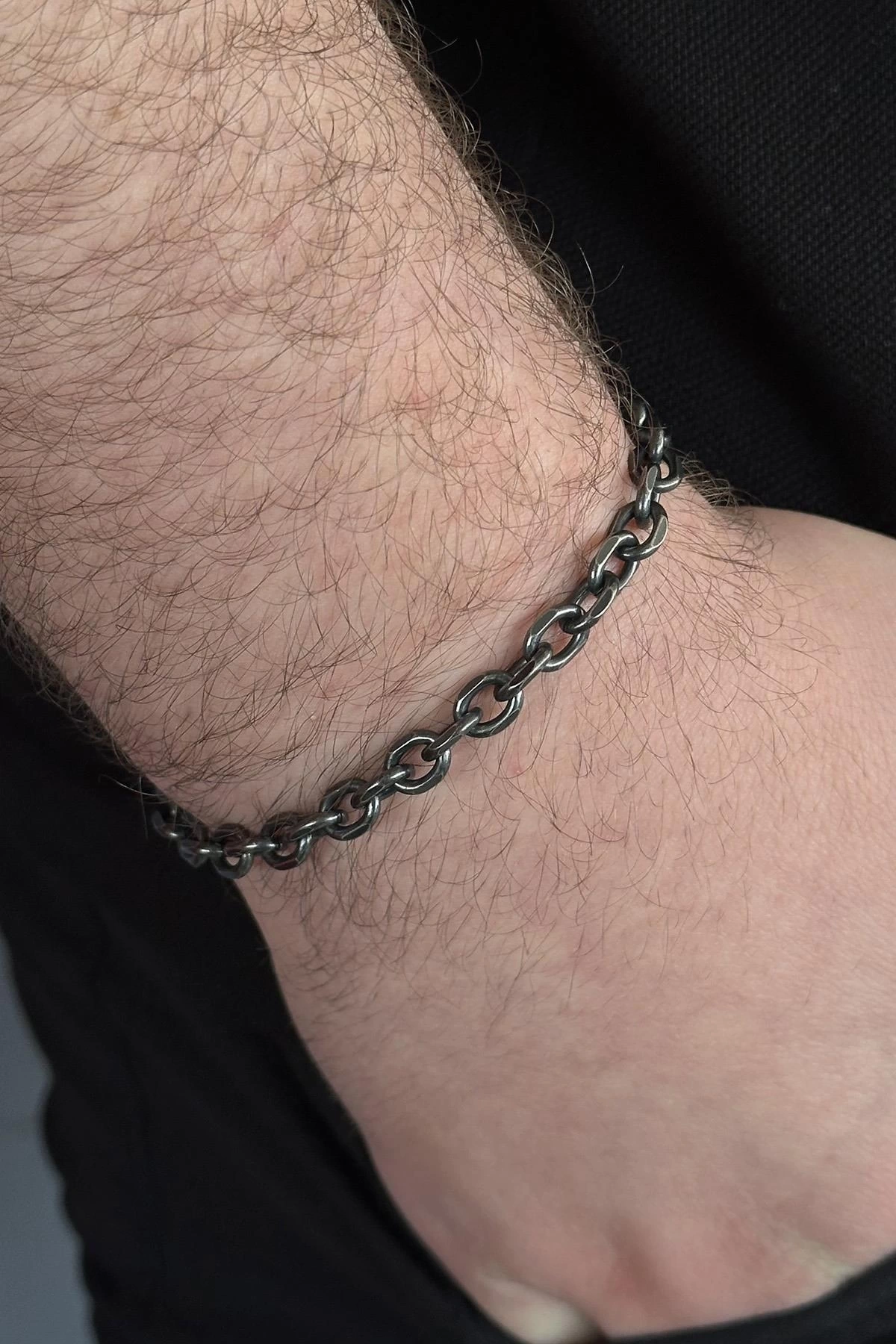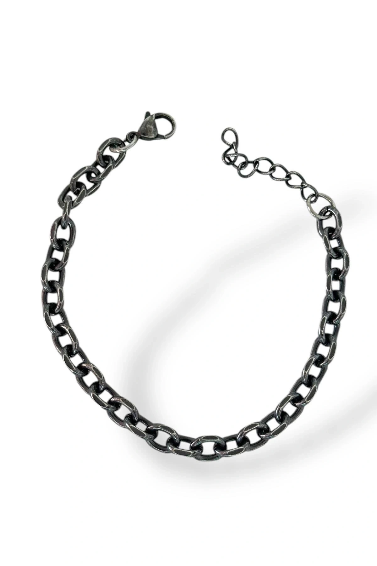 Siyah Renk Zincir Detaylı Erkek Çelik Bileklik