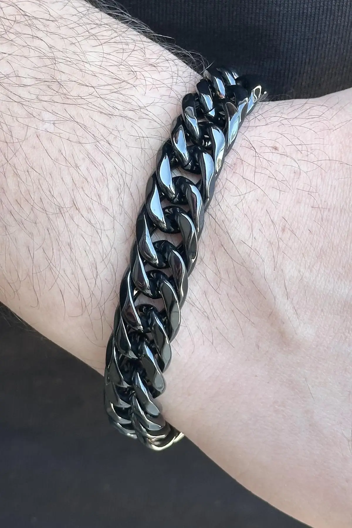 Siyah Renk Zincir Detaylı Erkek Çelik Bileklik