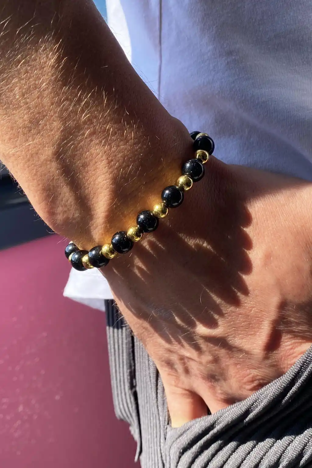 Siyah Ve altın Renk Boncuk Detaylı Erkek Bileklik