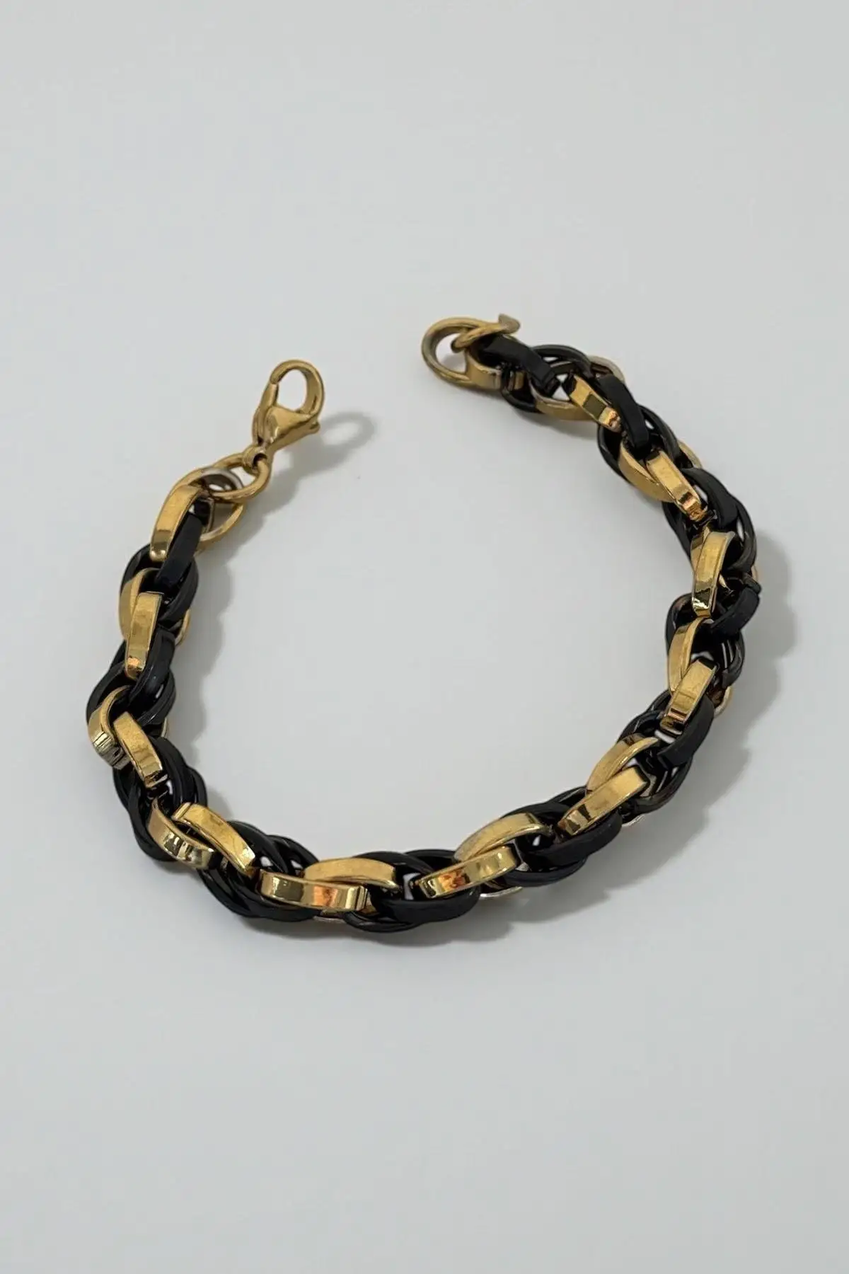Siyah Ve Altın Renk Zincir Detaylı Çelik Erkek Bileklik