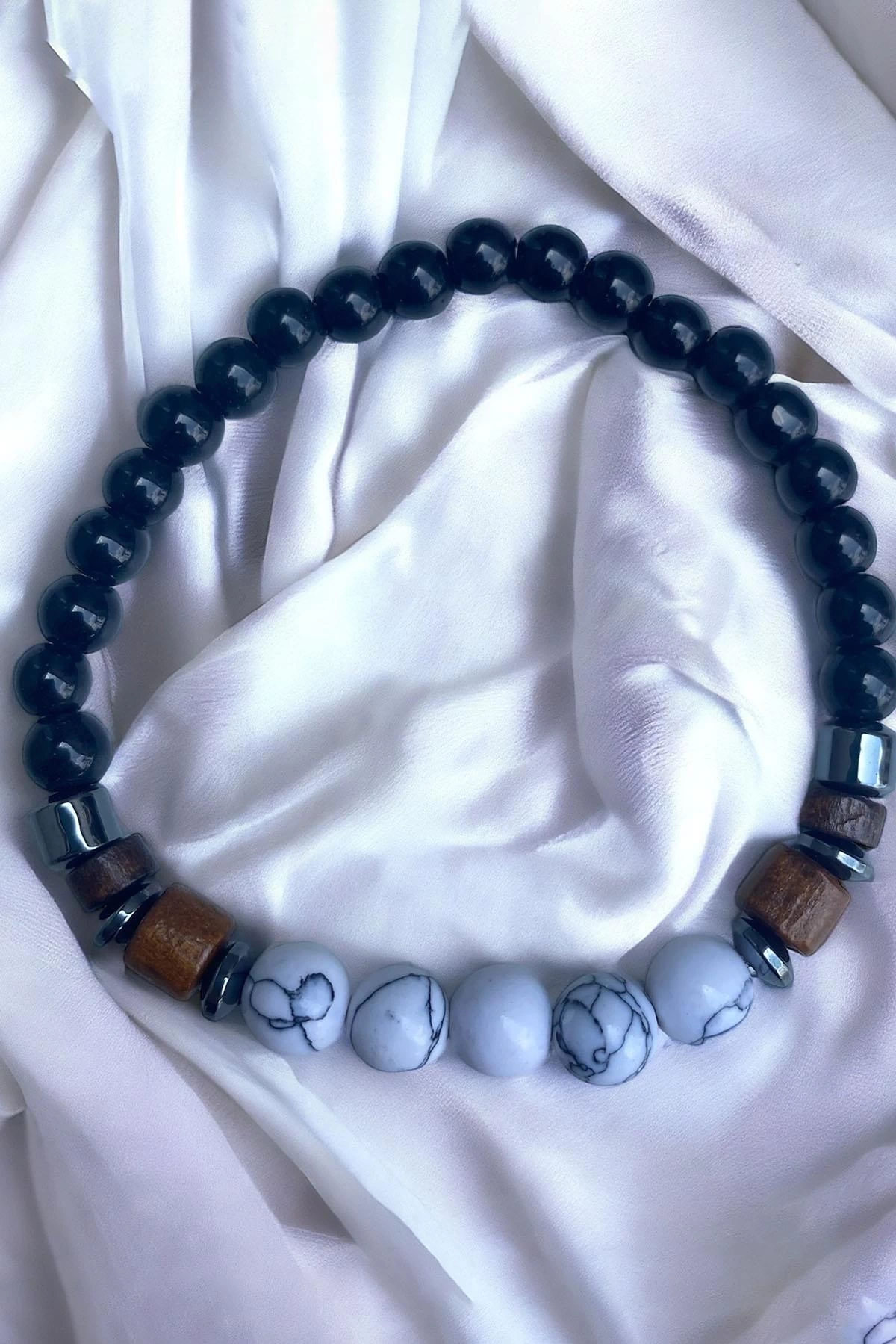 Siyah Ve Beyaz Renk Boncuk Detaylı Erkek Bileklik