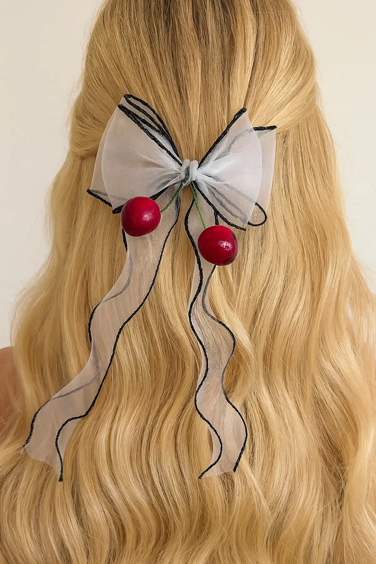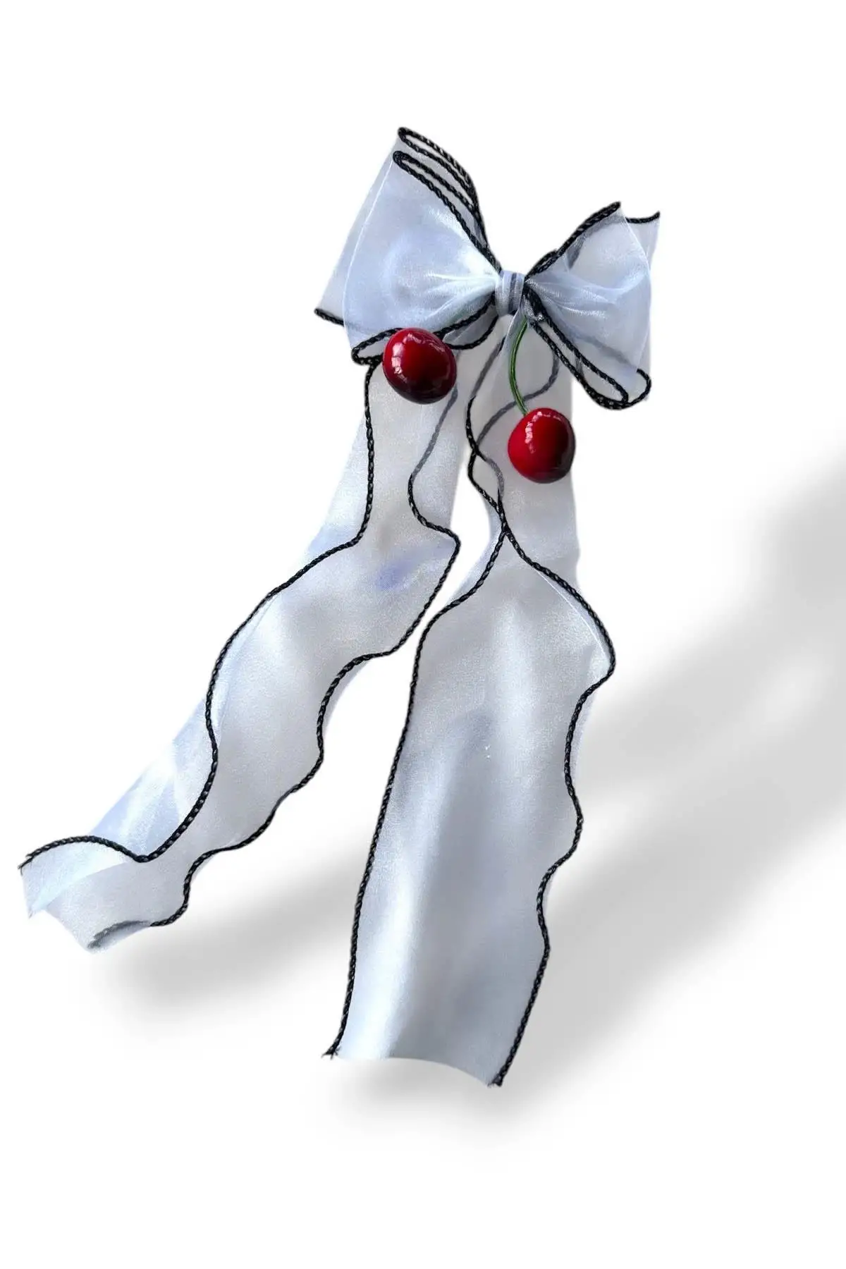 Siyah Ve Beyaz Renk Kiraz Figürlü Otomat Toka