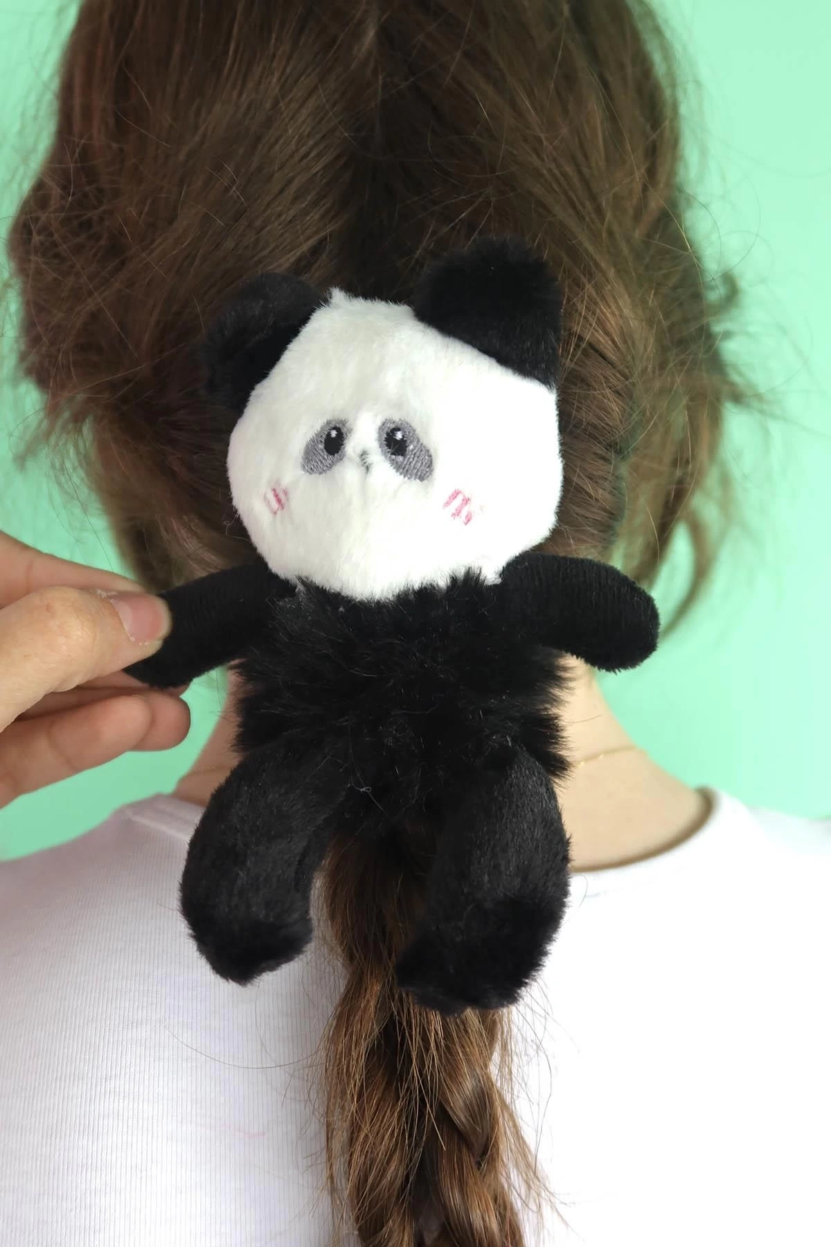 Siyah Ve Beyaz Renk Panda Figürlü Peluş Simit Toka