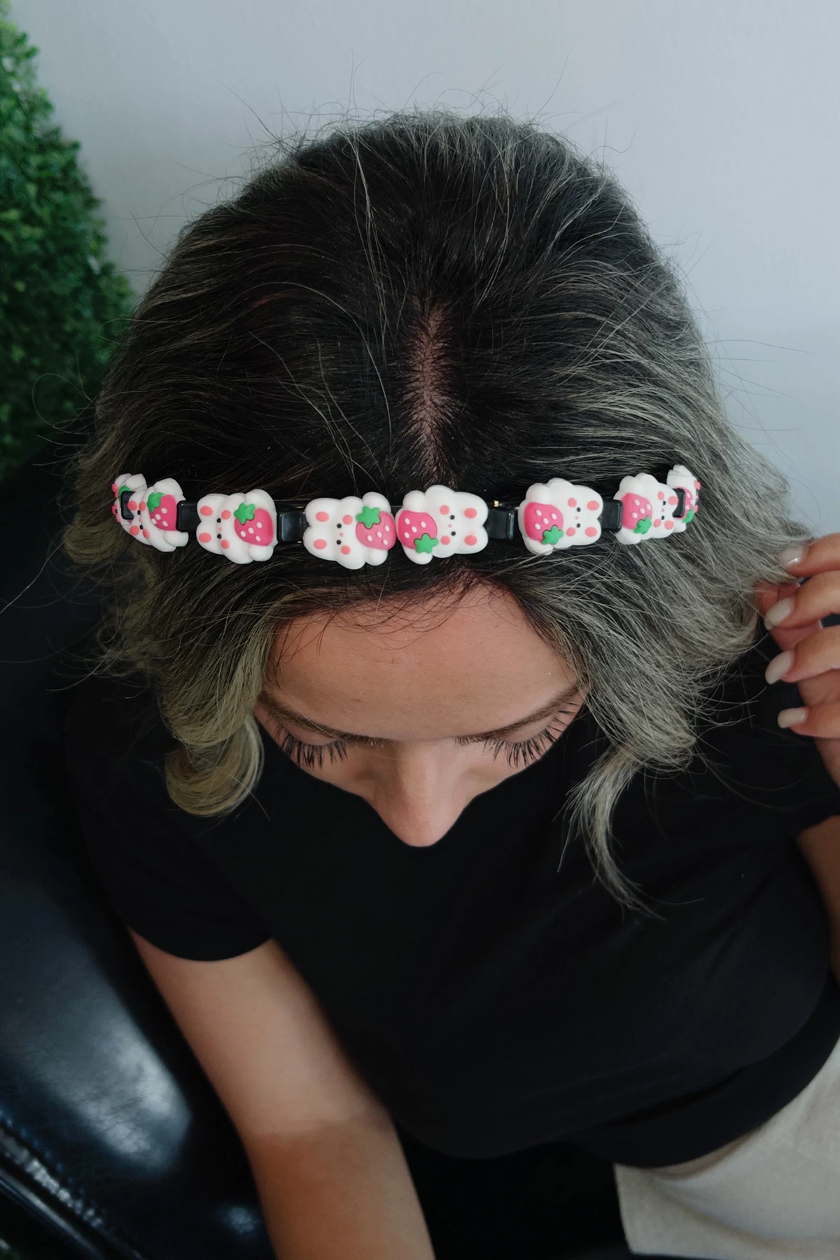 Siyah Ve Beyaz Renk Tavşan Figürlü Saç Bükücü Taç