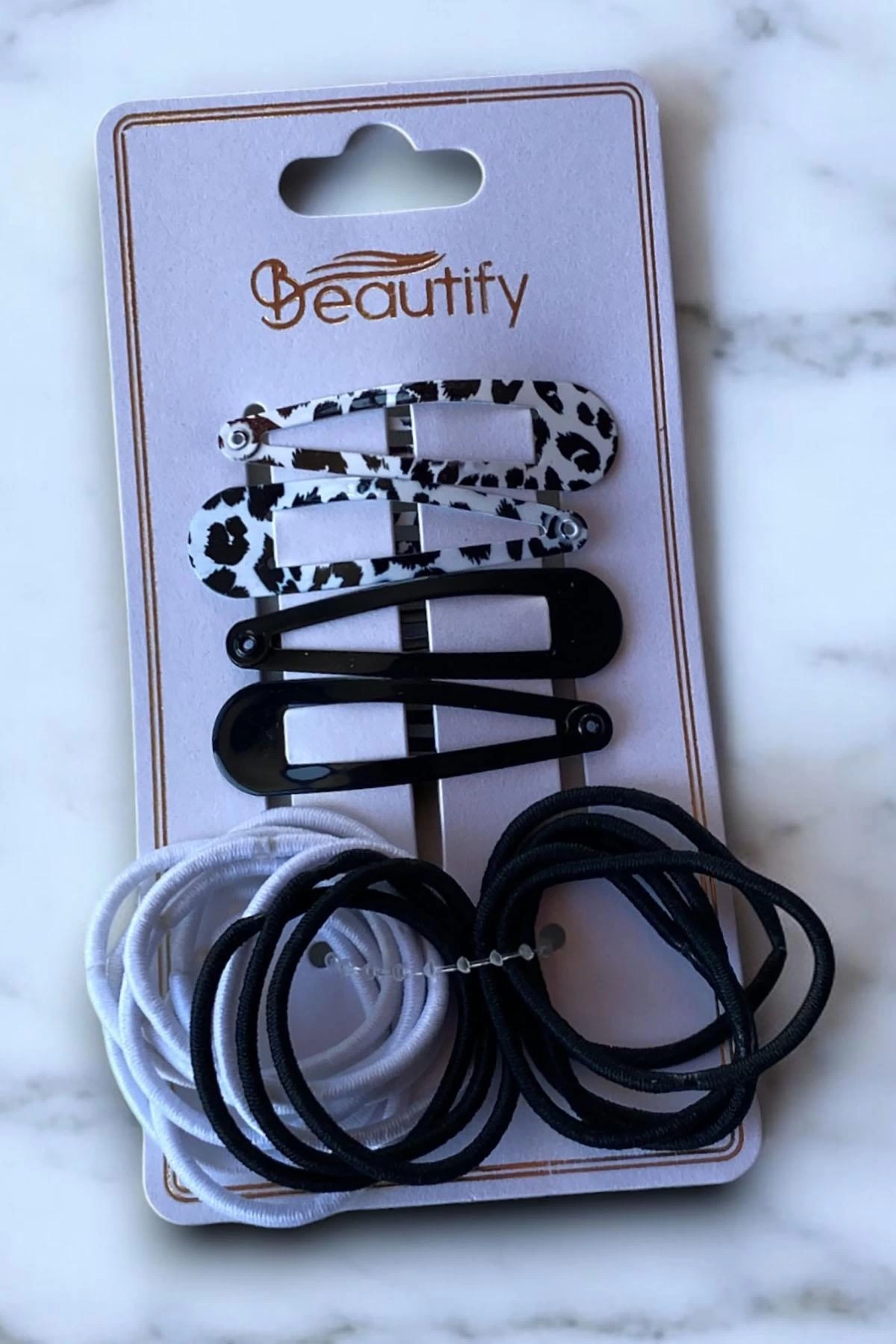 Siyah Ve Beyaz Renk Yan Toka Ve Lastik Toka Set
