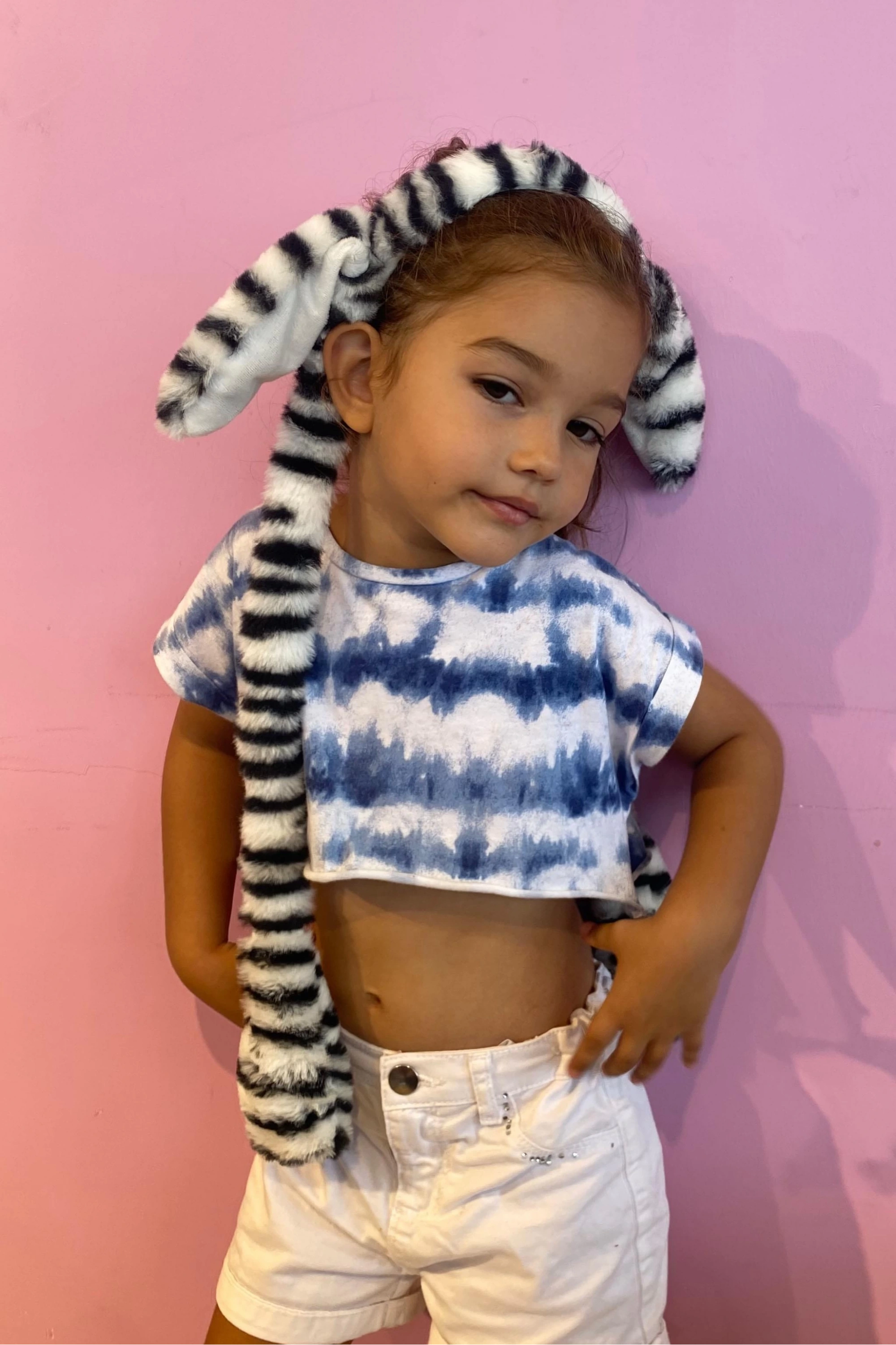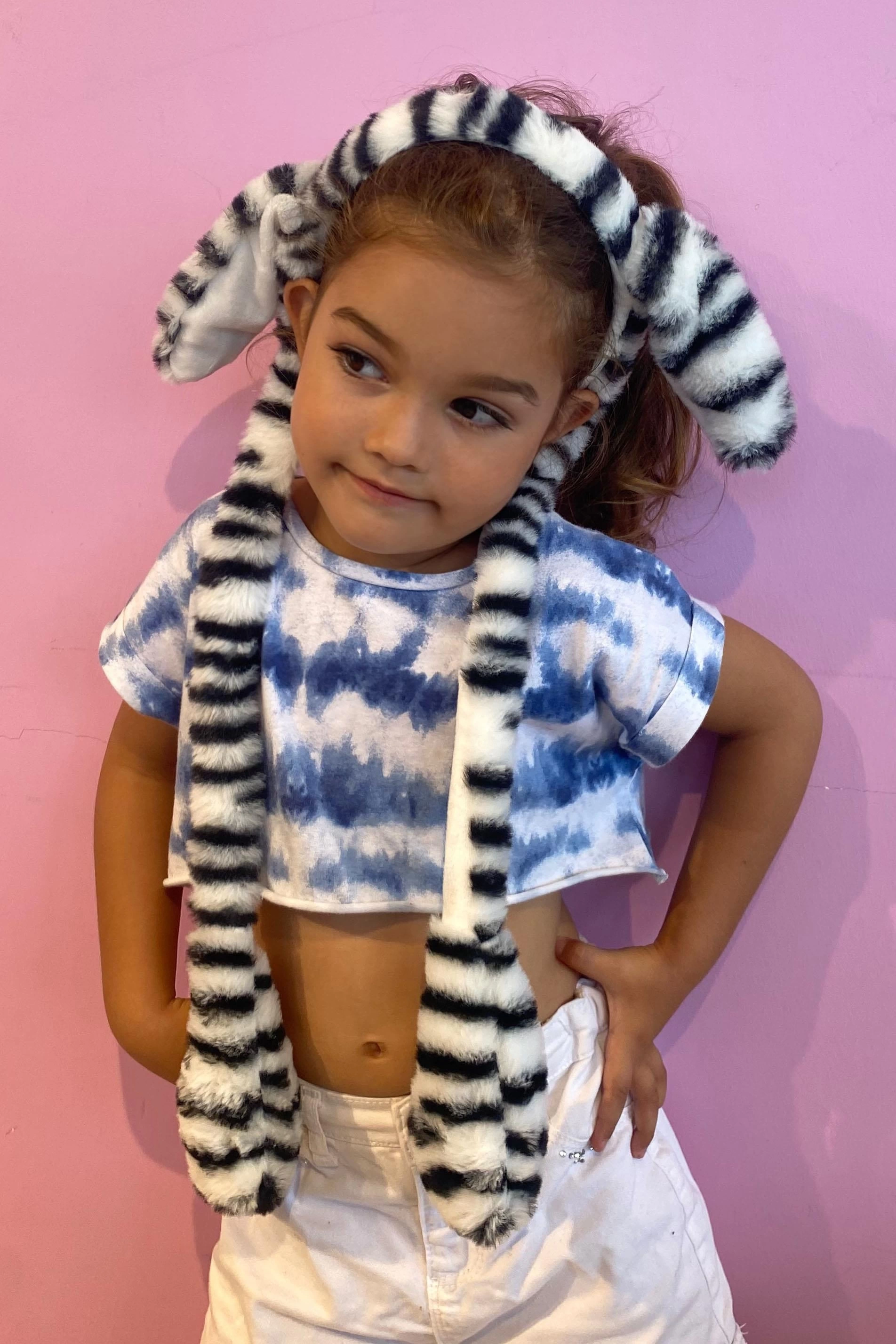 Siyah Ve Beyaz Renk Zebra Desenli Kulakları Oynayan Taç