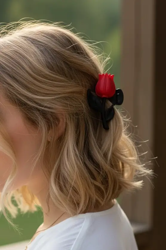 Siyah Ve Kırmızı Renk Lale Figürlü Mandal Toka