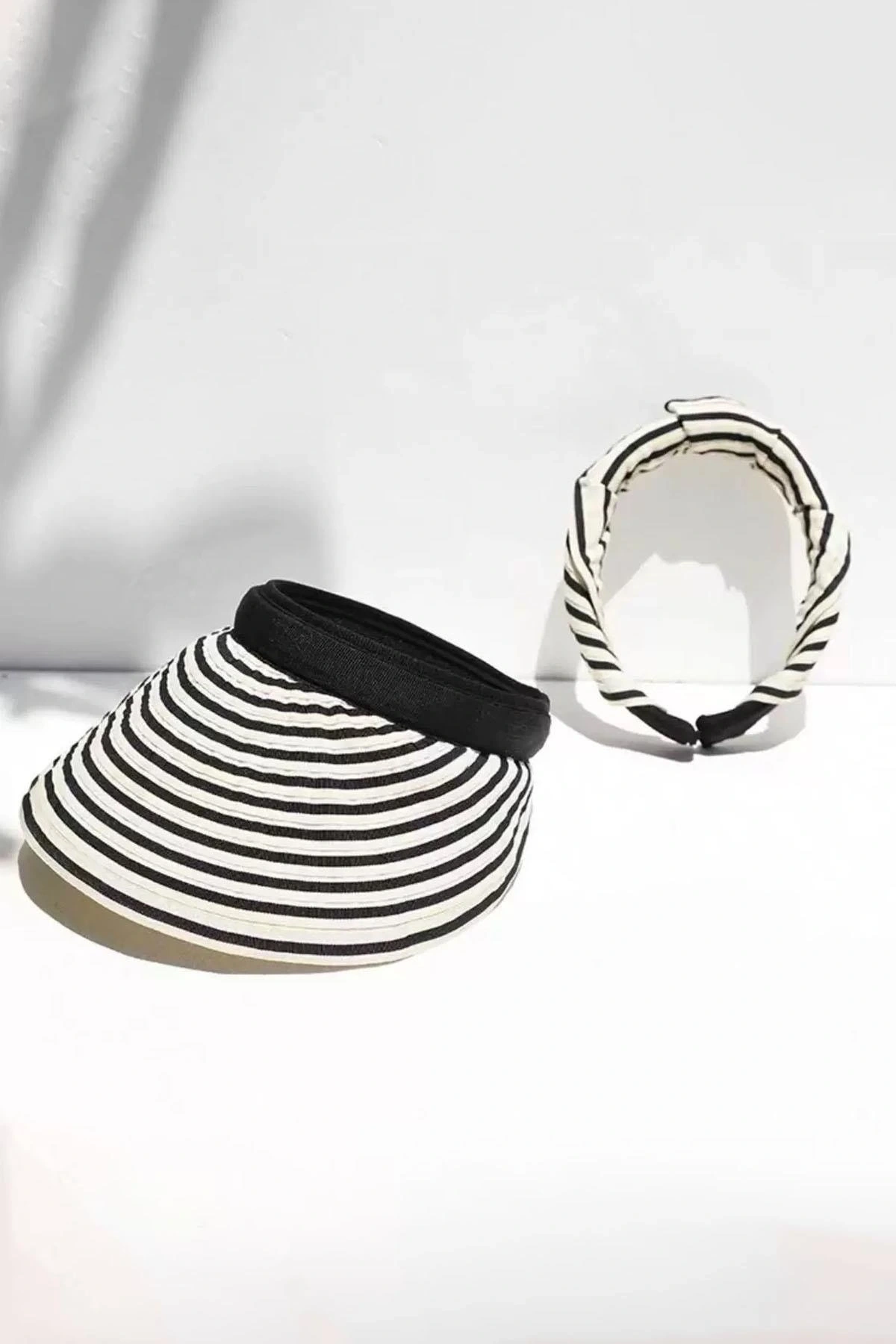 Siyah Ve Krem Renk Katlanabilir Güneşlik Şapka/Taç