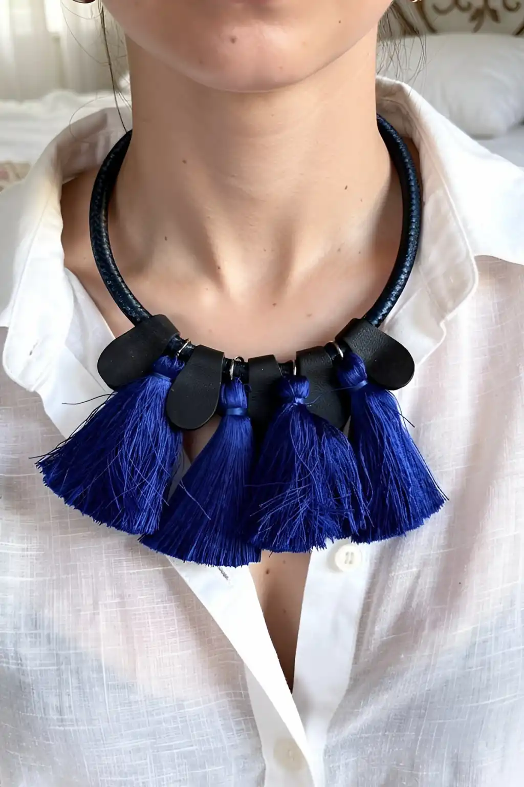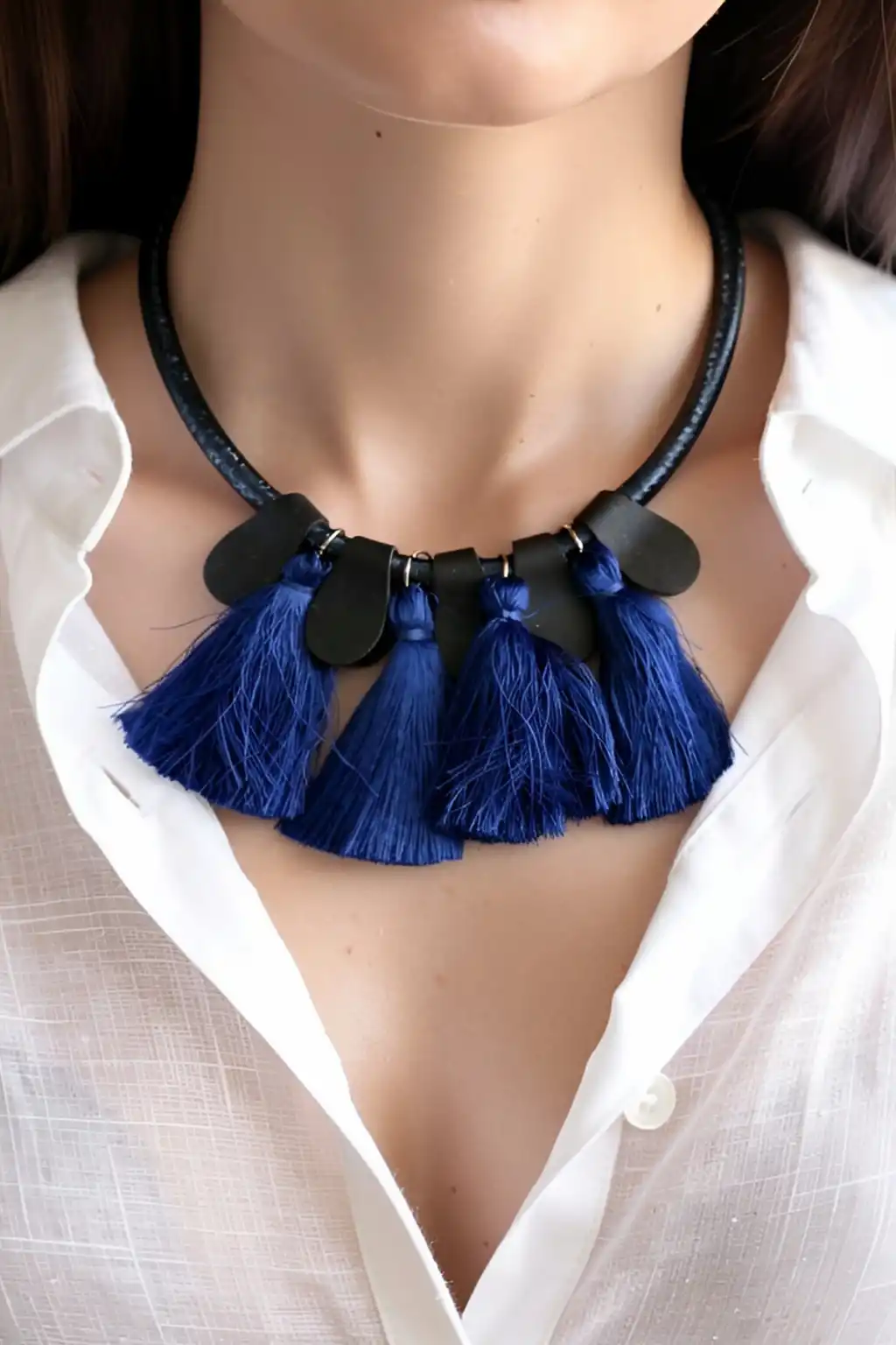 Siyah Ve Mavi Renk Püskül Detaylı Tasarım Kolye