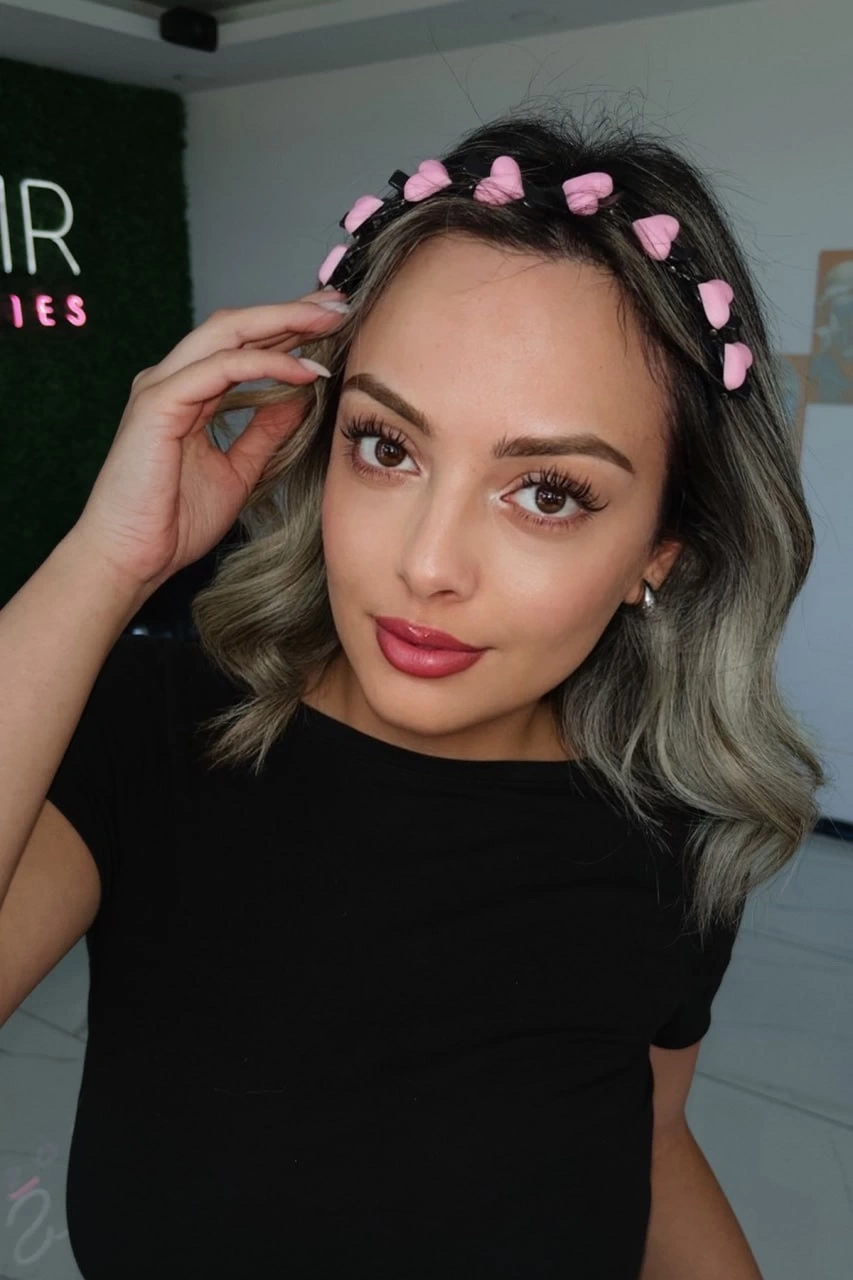 Siyah Ve Pembe Renk Kalp Figürlü Saç Bükücü Taç