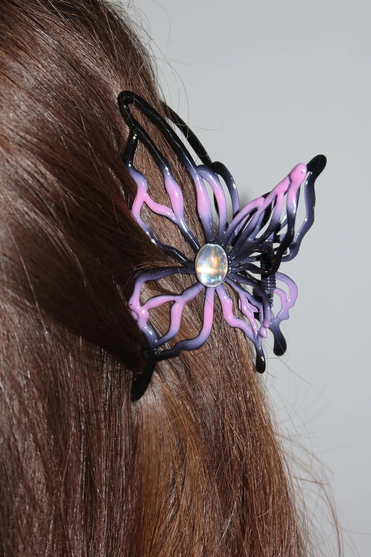 Siyah Ve Pembe Renk Kelebek Figürlü Metal Mandal Toka