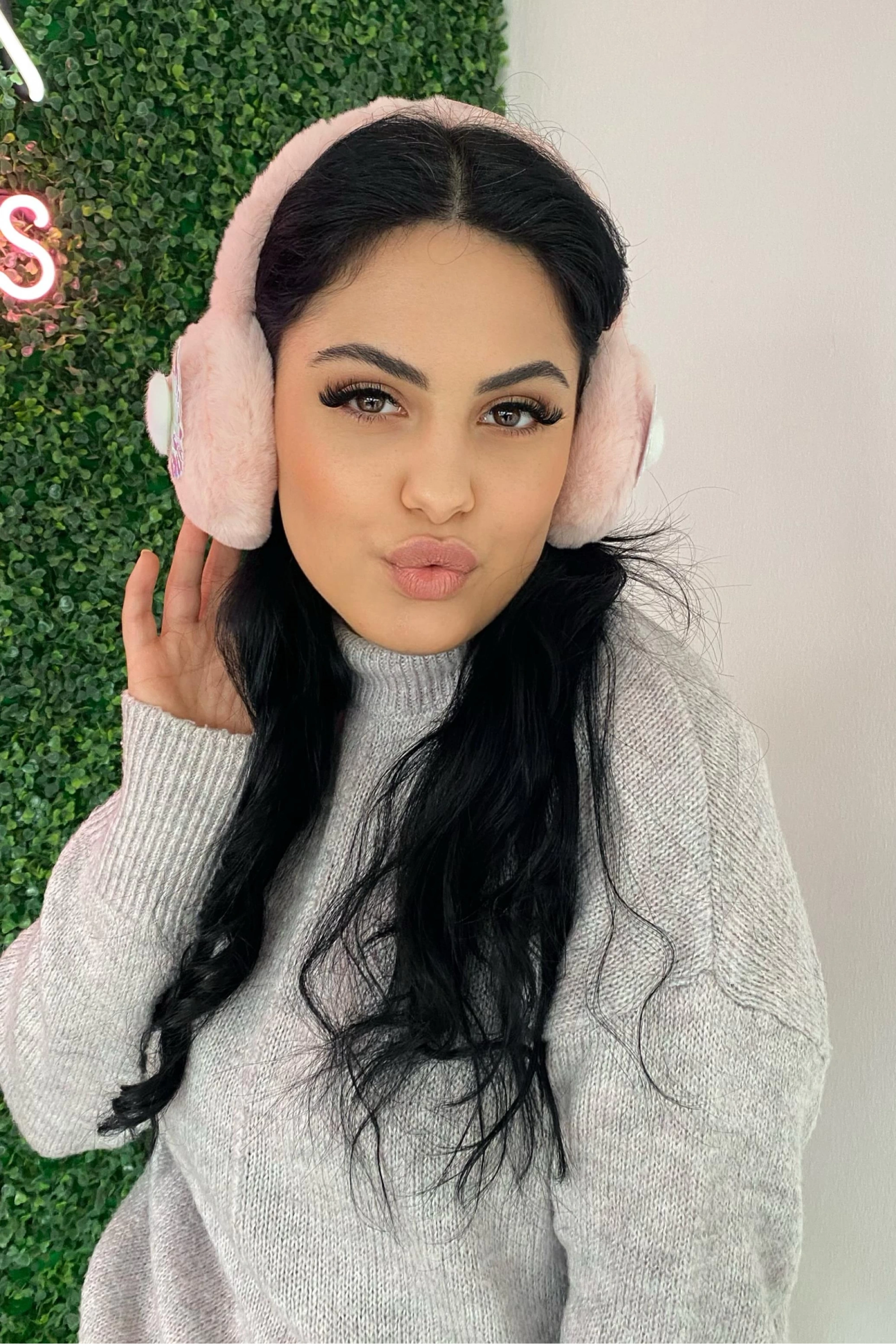 Somon Renk Kalp Detaylı Peluş Kulaklık