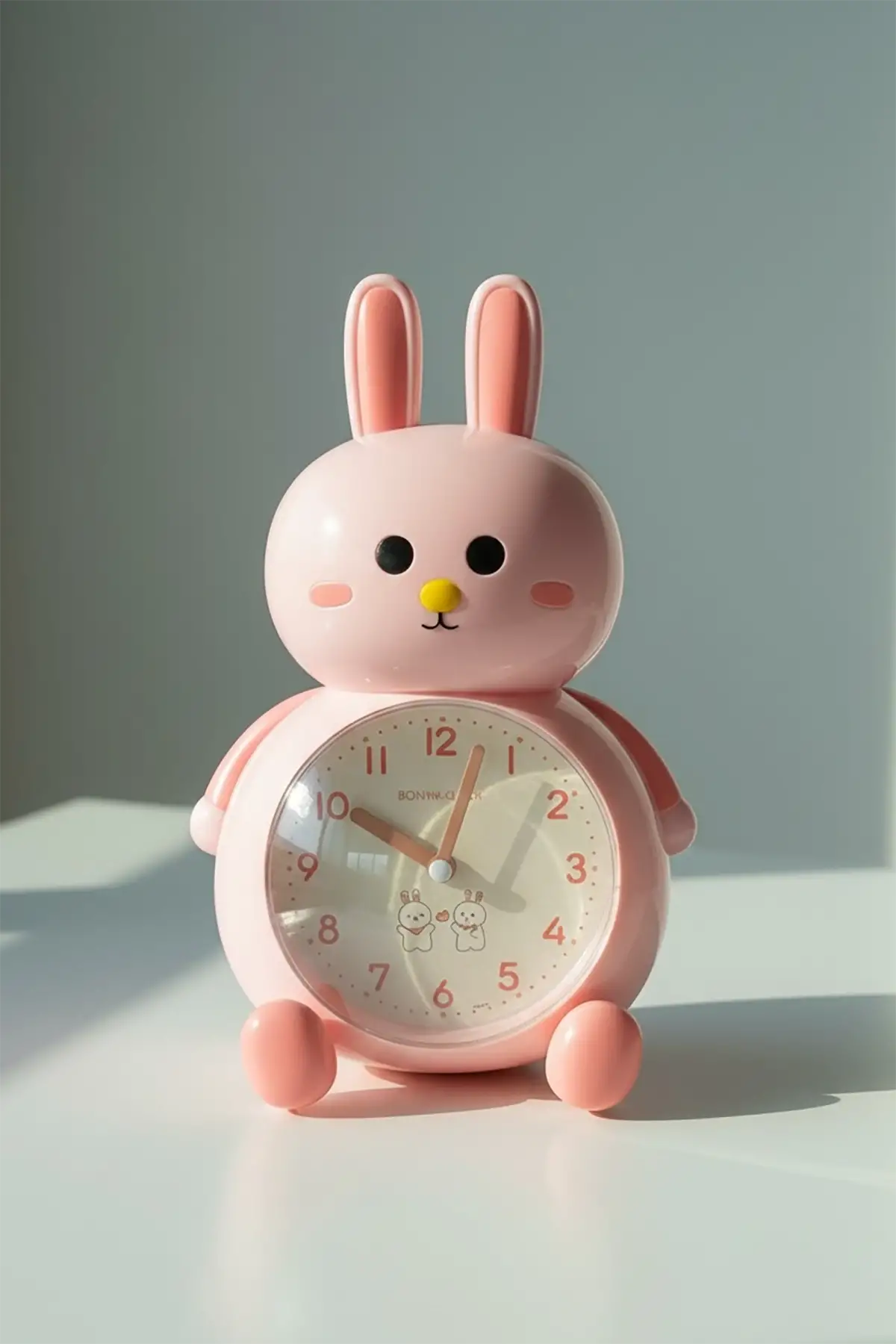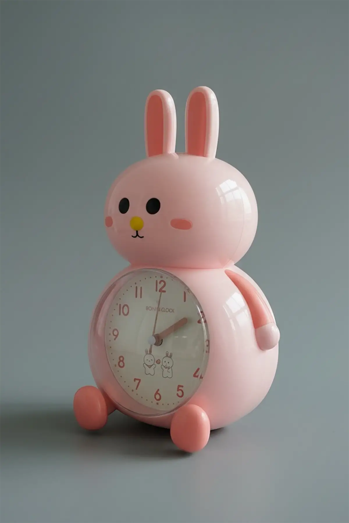 Somon Renk Tavşan Figürlü Alarmlı Masa Saati