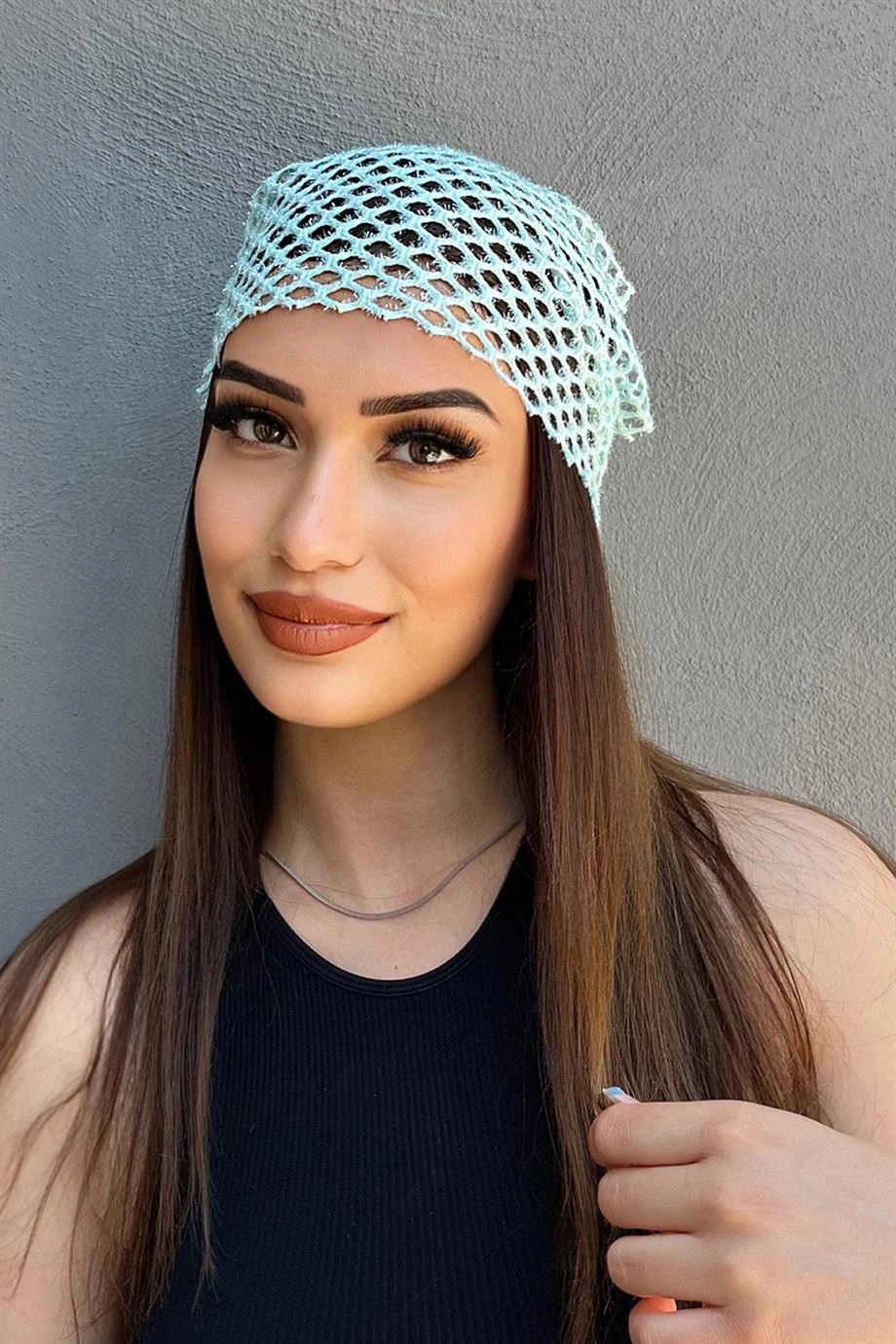 Su Yeşili Renk Simli Fular