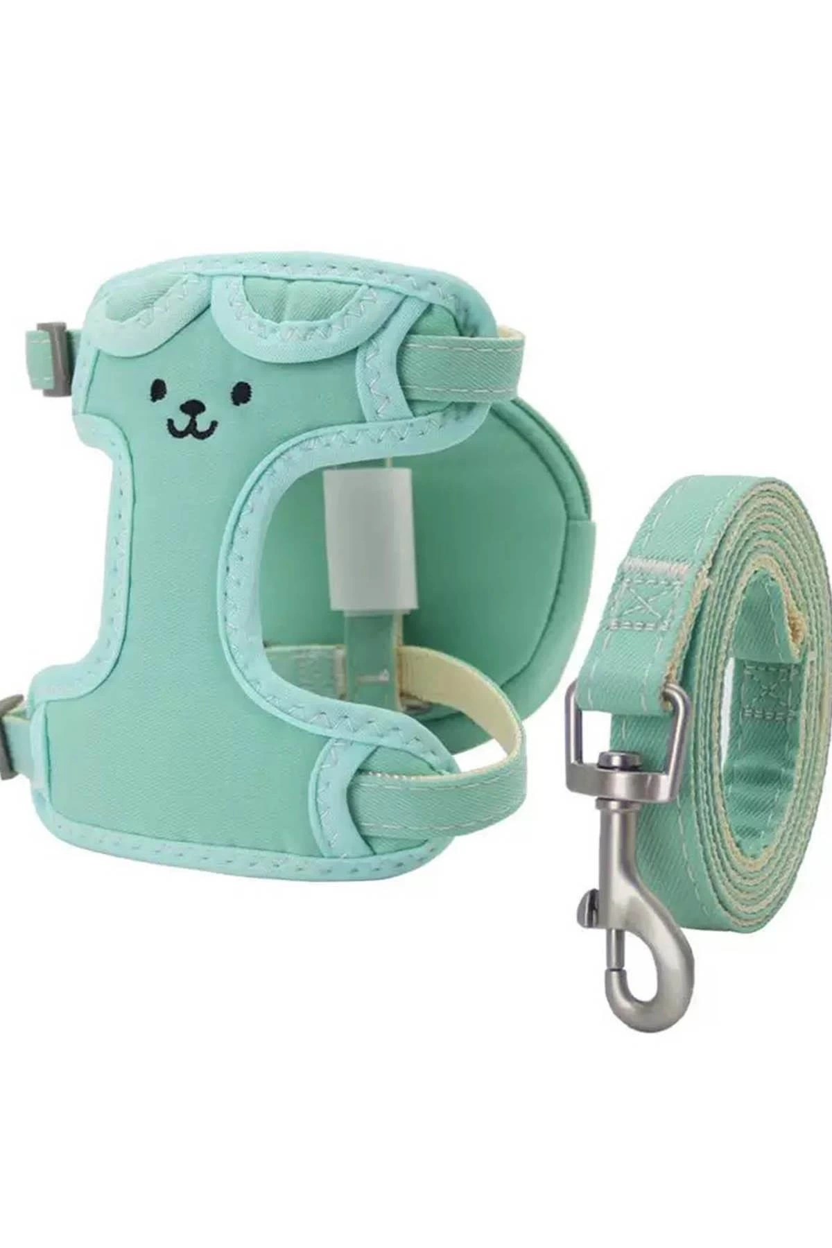 Turkuaz Renk Ayıcık Çanta Detaylı Figürlü Bel Göğüs Ayarlanabilir Kedi/Köpek Tasma