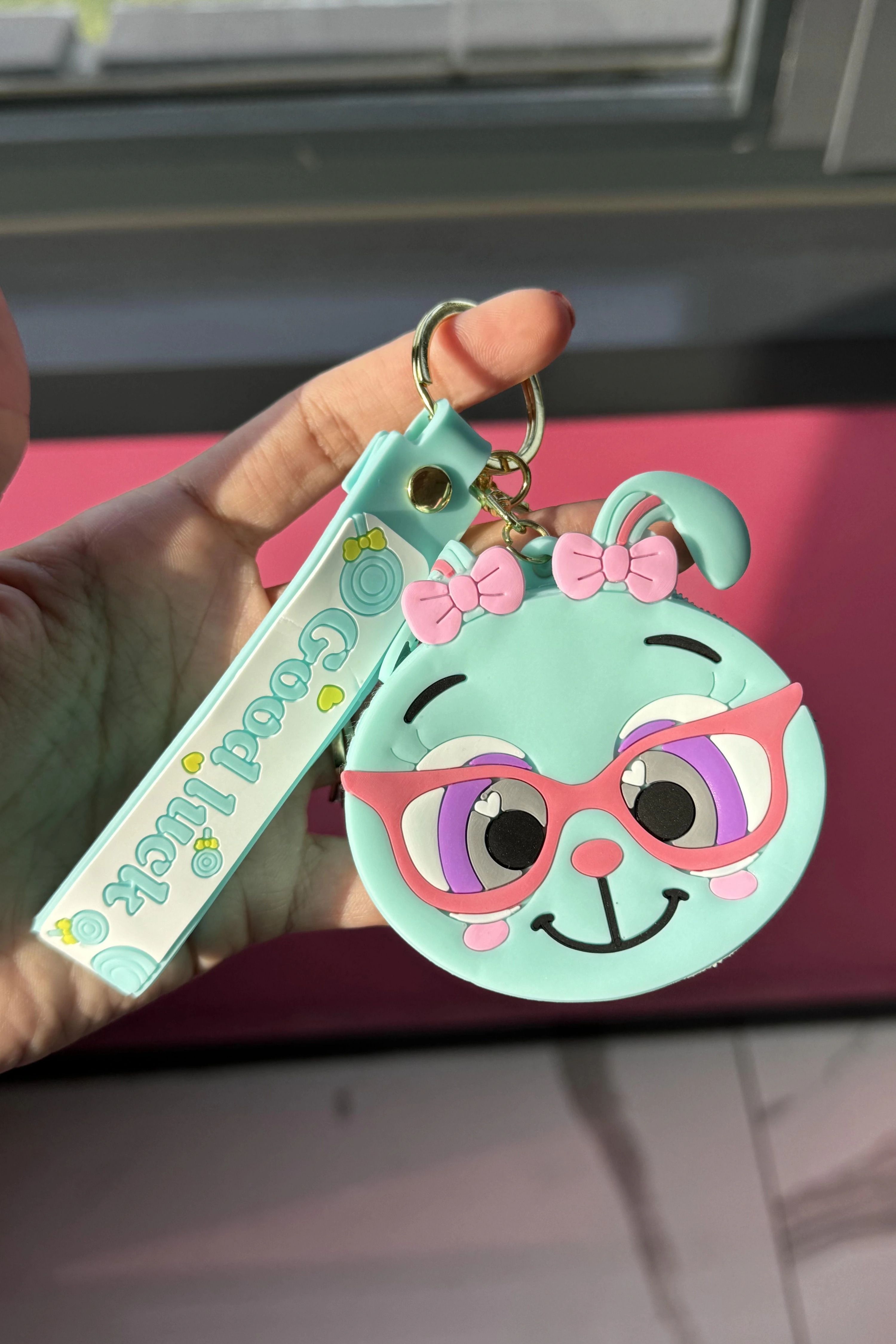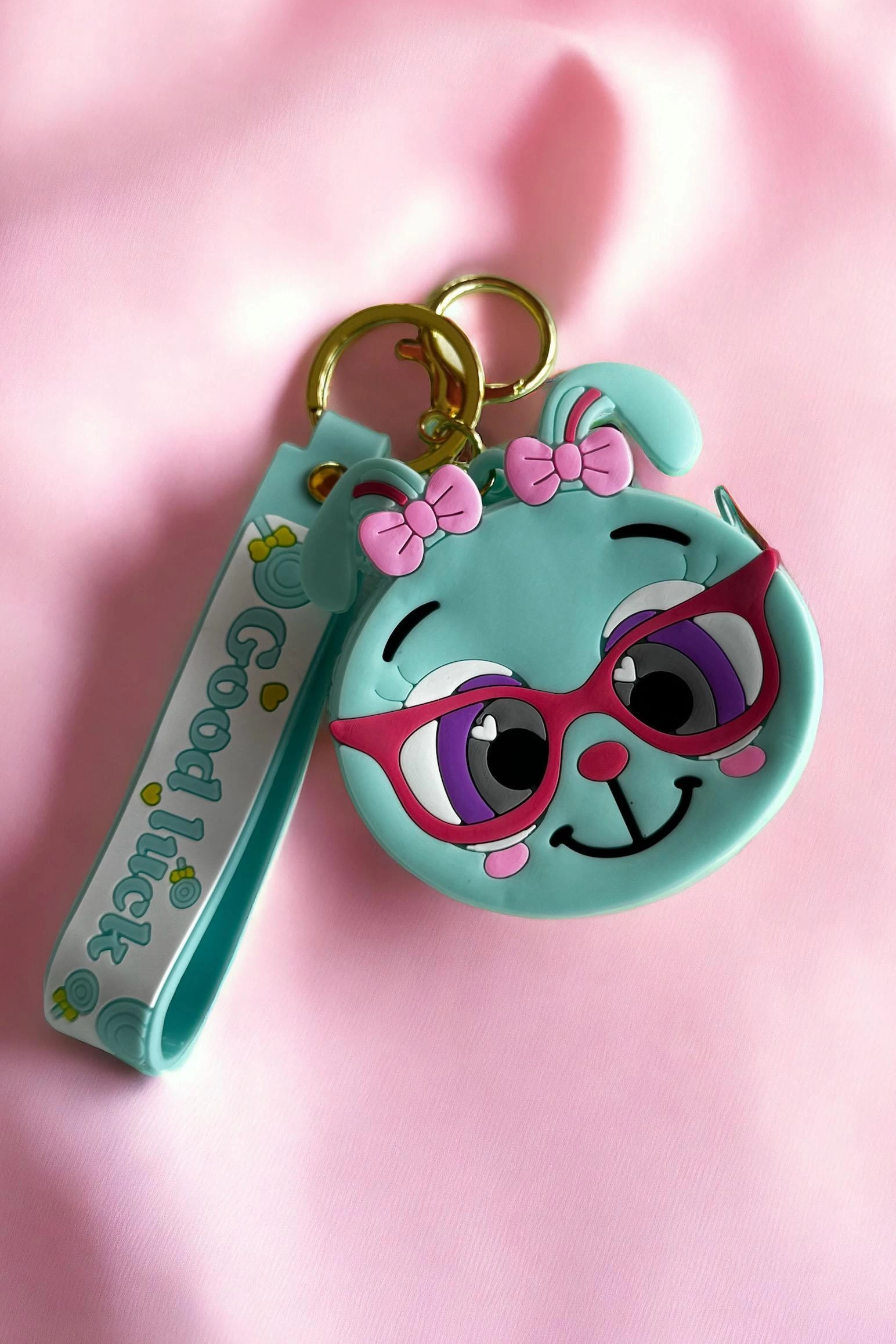 Turkuaz Renk Kedi Figürlü Cüzdan/Anahtarlık