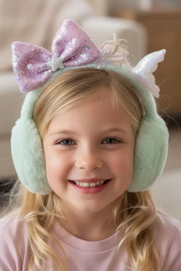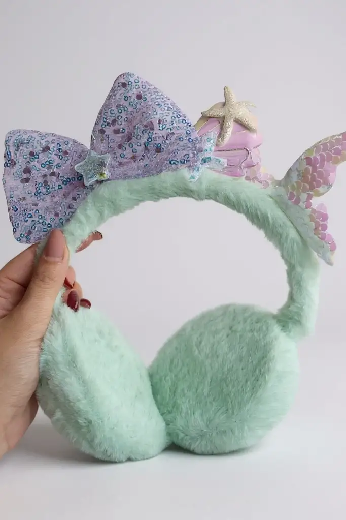 Turkuaz Ve Lila Renk Karışık Figürlü Çocuk Peluş Kulaklık